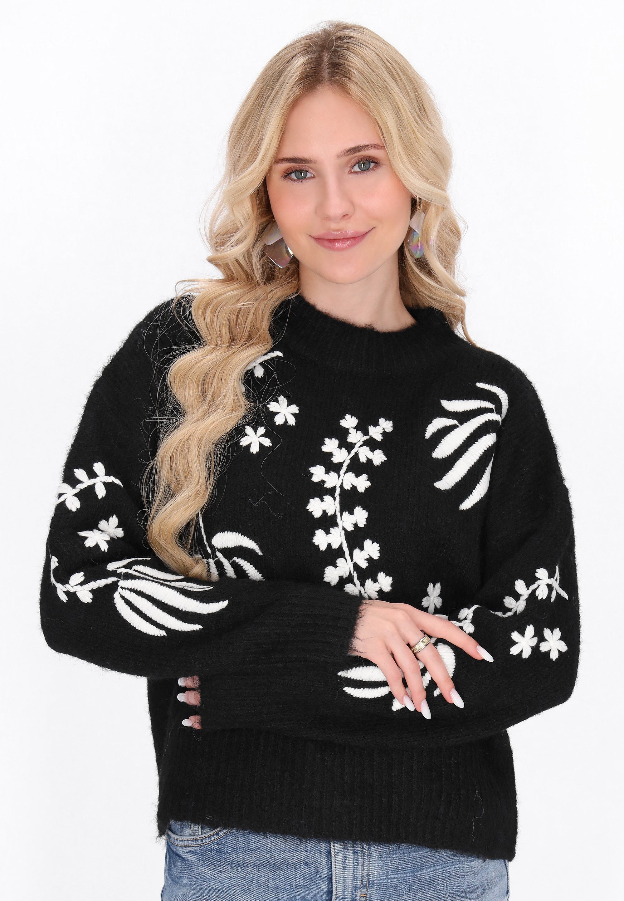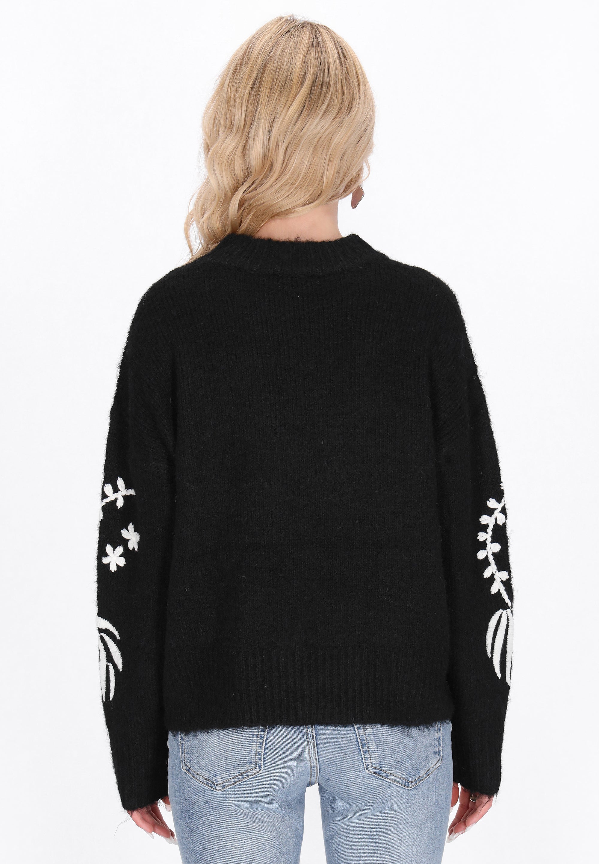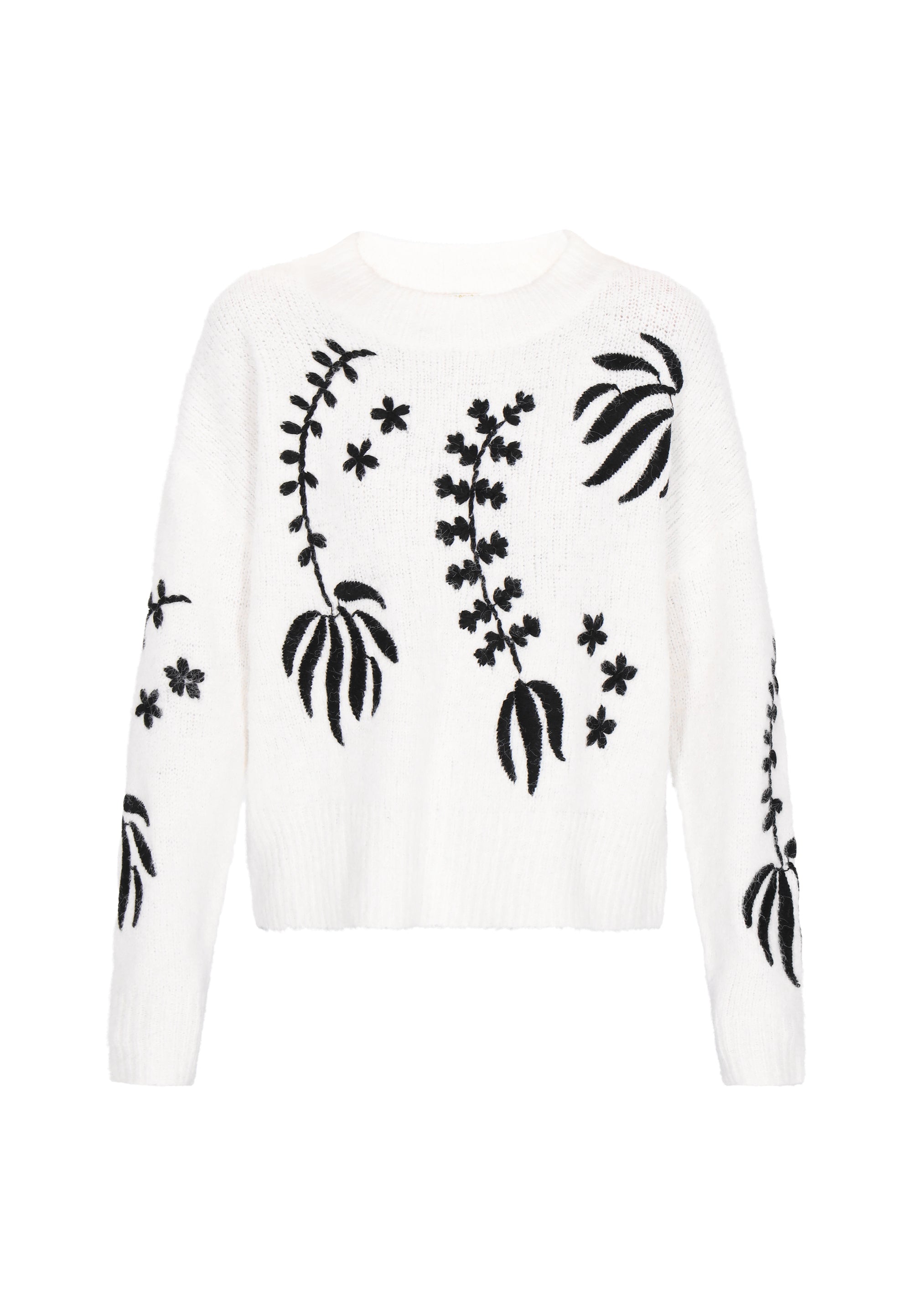 Nadaj swojemu codziennemu wyglądowi boho, bohemyjski klimat dzięki temu unikalnemu swetrowi z kolekcji Fashion Look. Wykonany z miękkiej dzianiny, charakteryzuje się luźnym krojem i opuszczonymi ramionami dla komfortu i swobody ruchów. Okrągły dekolt i długie rękawy sprawiają, że jest idealnym wyborem na chłodniejsze dni. Subtelne kwiatowe hafty dodają uroku, pięknie uzupełniając strukturę dzianiny i nadając elementowi wyraźny, kobiecy akcent. Idealny do codziennego noszenia — wygodny, przytulny i stylowy, doskonale uzupełnia luźny, boho styl.