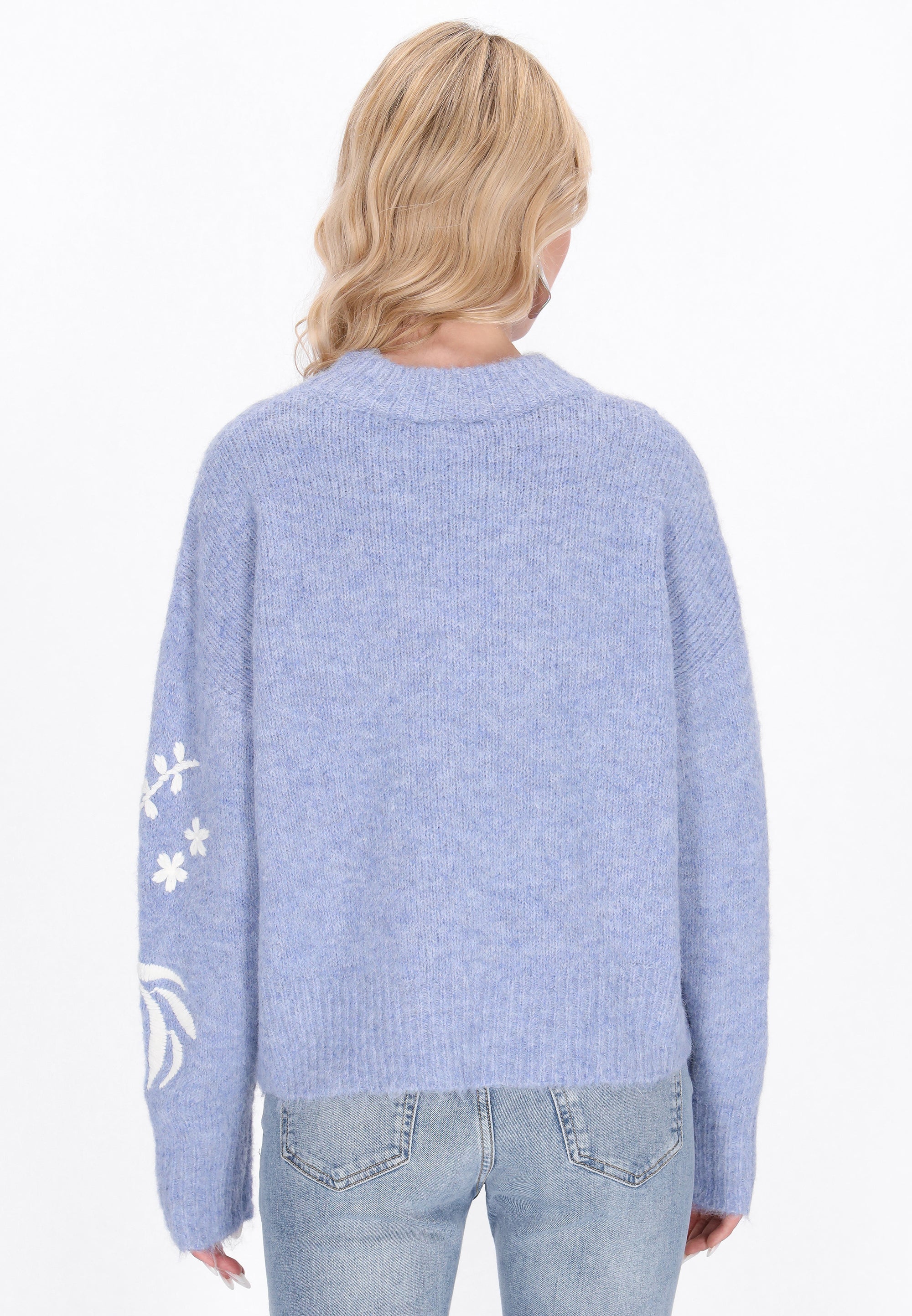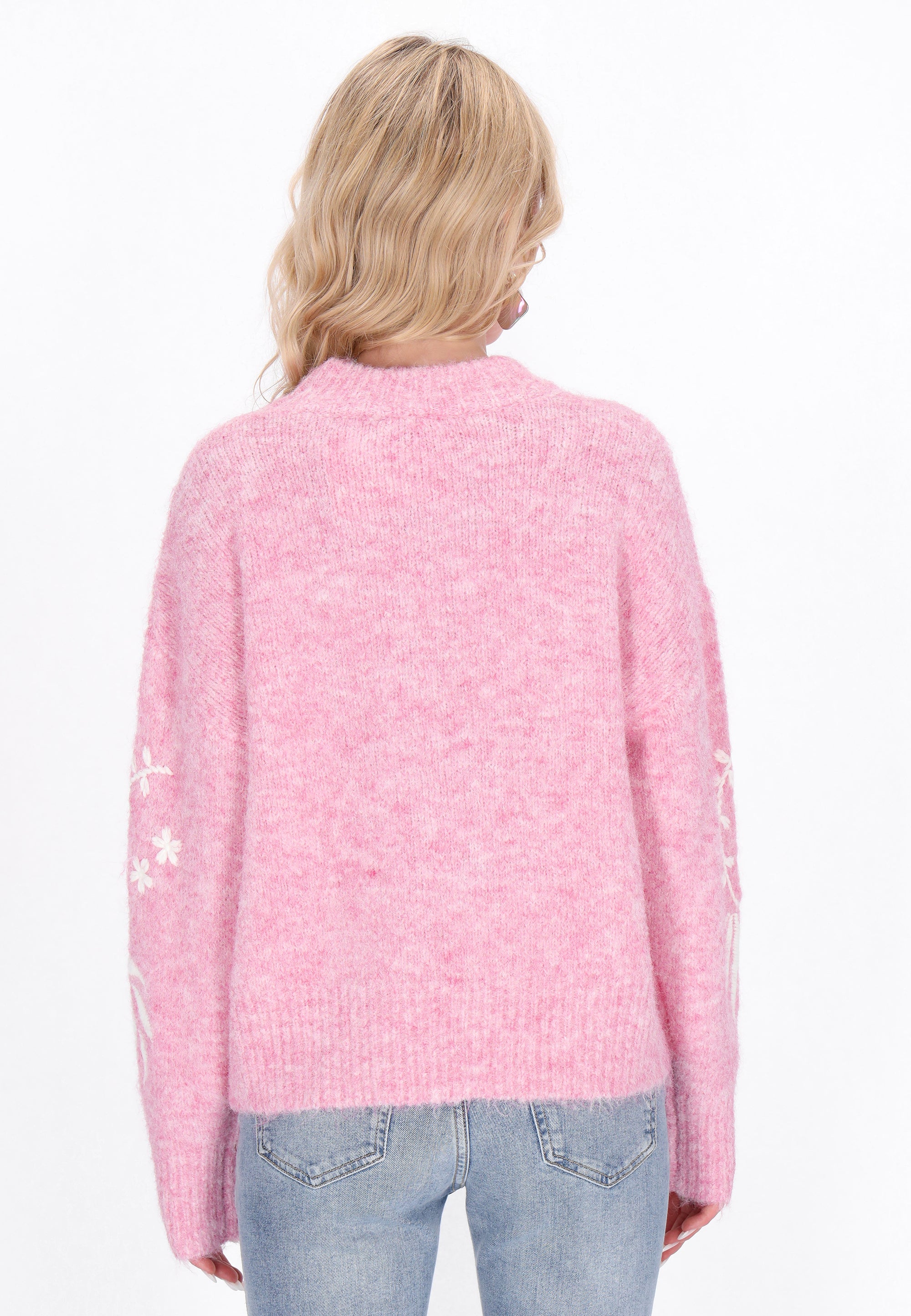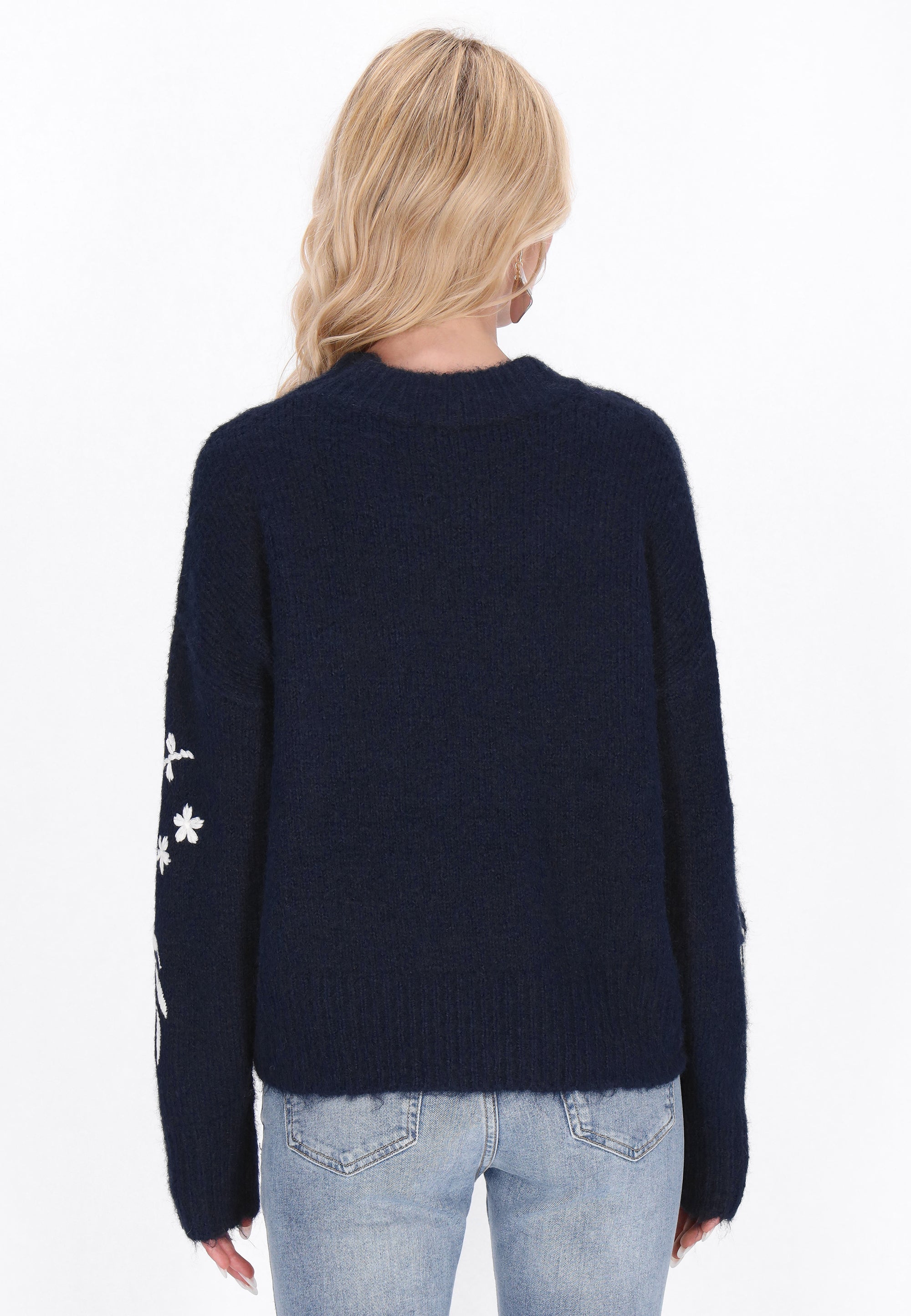 Nadaj swojemu codziennemu wyglądowi boho, bohemyjski klimat dzięki temu unikalnemu swetrowi z kolekcji Fashion Look. Wykonany z miękkiej dzianiny, charakteryzuje się luźnym krojem i opuszczonymi ramionami dla komfortu i swobody ruchów. Okrągły dekolt i długie rękawy sprawiają, że jest idealnym wyborem na chłodniejsze dni. Subtelne kwiatowe hafty dodają uroku, pięknie uzupełniając strukturę dzianiny i nadając elementowi wyraźny, kobiecy akcent. Idealny do codziennego noszenia — wygodny, przytulny i stylowy, doskonale uzupełnia luźny, boho styl.