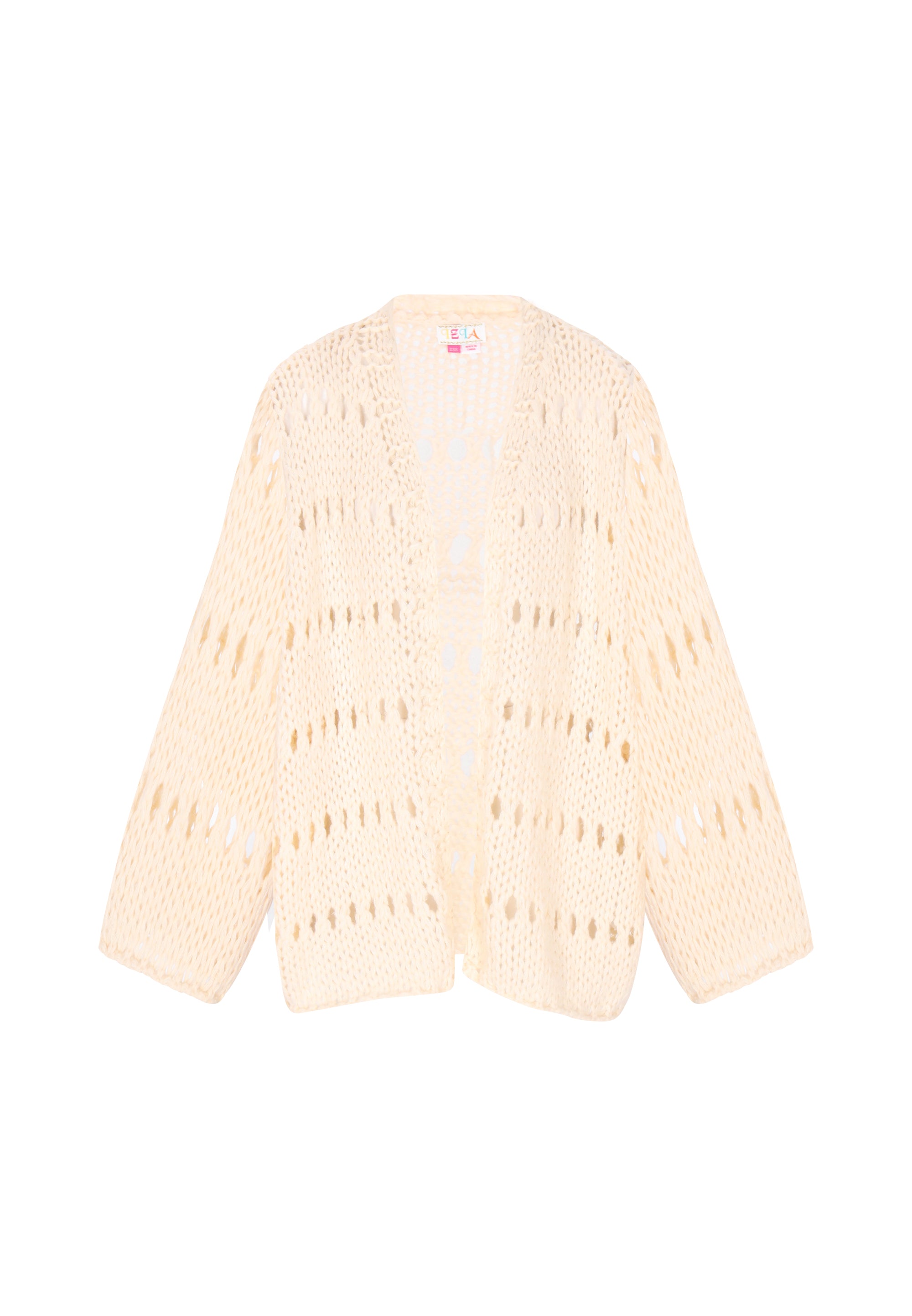 Pozostań bez wysiłku przytulny dzięki temu swobodnemu kardiganowi z kolekcji Boho. Posiada otwarty przód, długie szerokie rękawy i opuszczone ramiona, oferując swobodny komfort z pochlebną sylwetką. Dziany delikatnym wzorem ażurowym, ten kardigan dodaje subtelnej faktury i boho uroku codziennym stylizacjom. Miękki, wygodny i wszechstronny, jest idealny do warstwowania lub noszenia samodzielnie dla stylowego, przytulnego wyglądu.