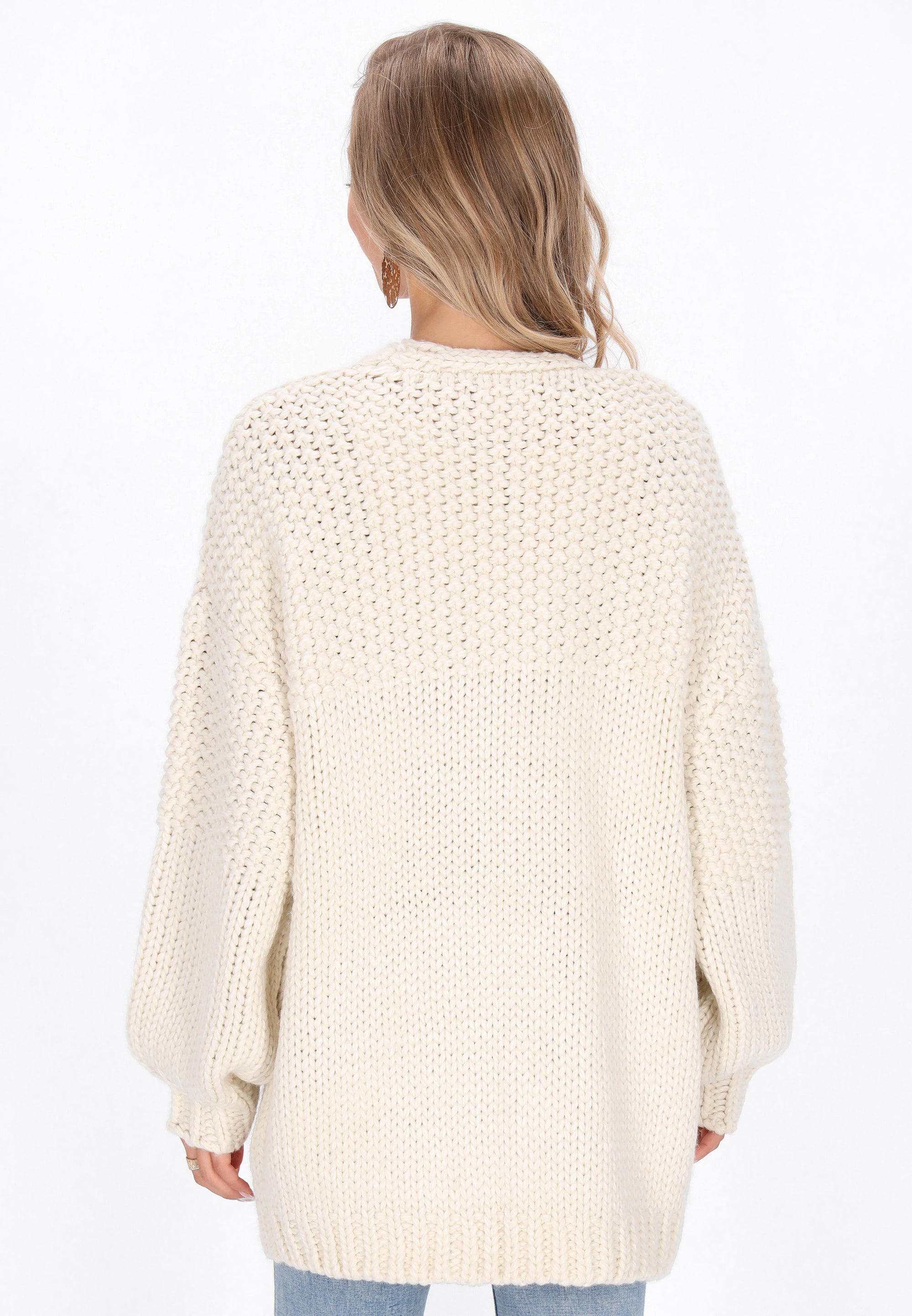 Sweter z kolekcji Fashion Look – wygodny, stylowy i pełen detali. Ten luźny sweter wykonany jest z miękkiej, przytulnej dzianiny. Posiada długie, bufiaste rękawy z opuszczonym ramieniem oraz otwarty przód, co zapewnia swobodny krój i łatwe łączenie z innymi elementami garderoby. Delikatne kwiatowe hafty w połączeniu ze strukturą tkaniny dodają swetrowi charakteru. Idealny do codziennego, casualowego stylu, gwarantuje komfort i przytulność przy każdym noszeniu.