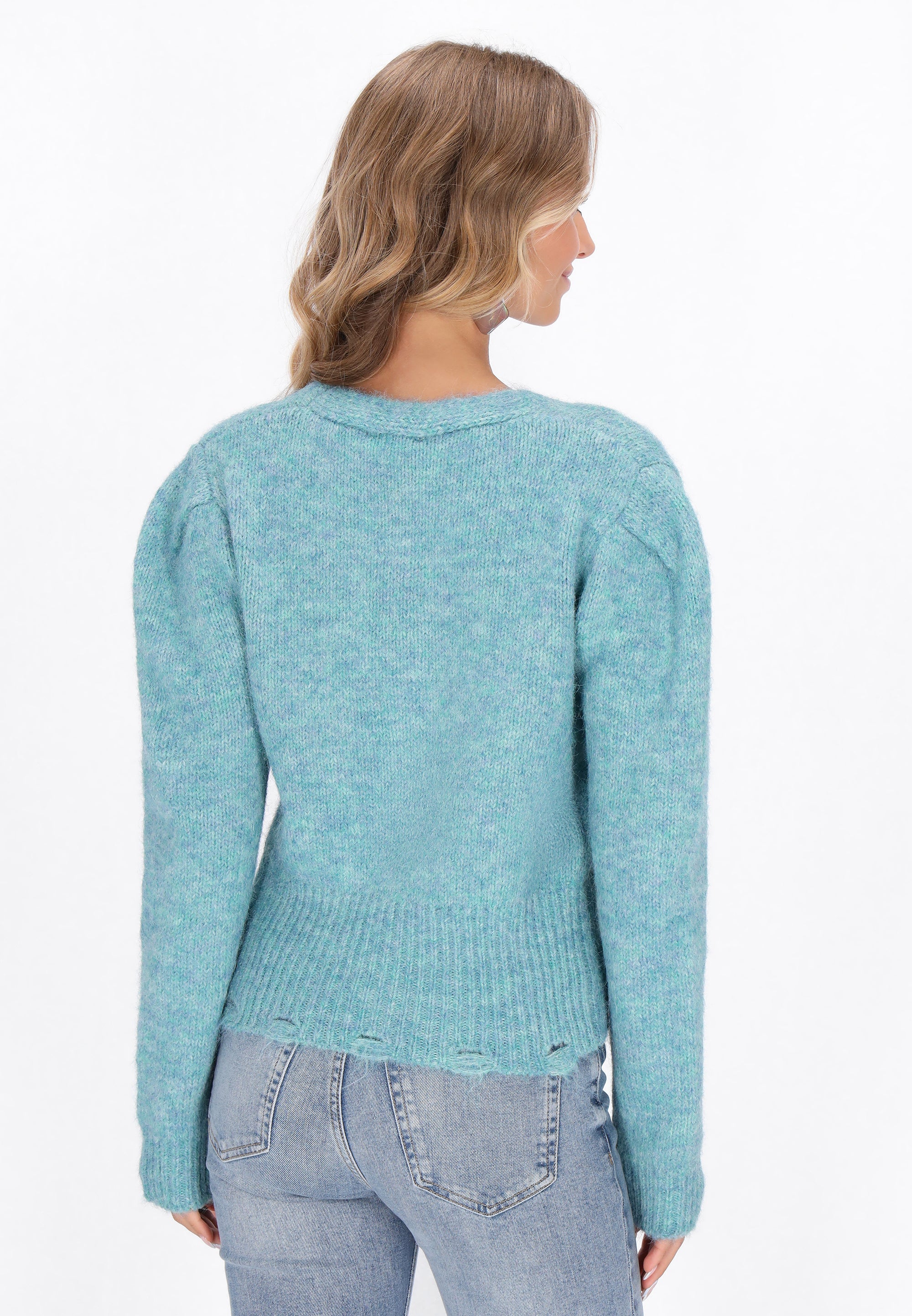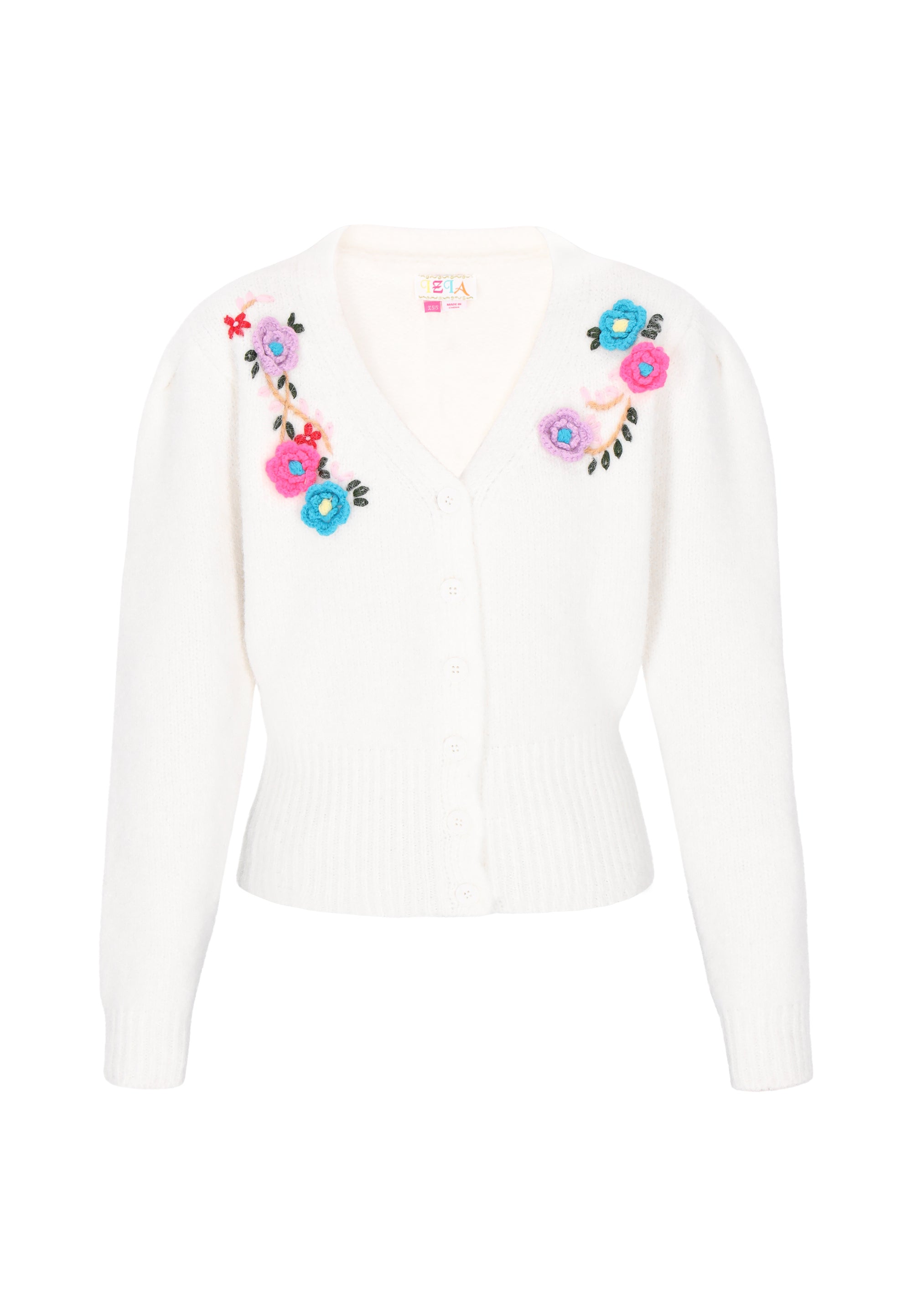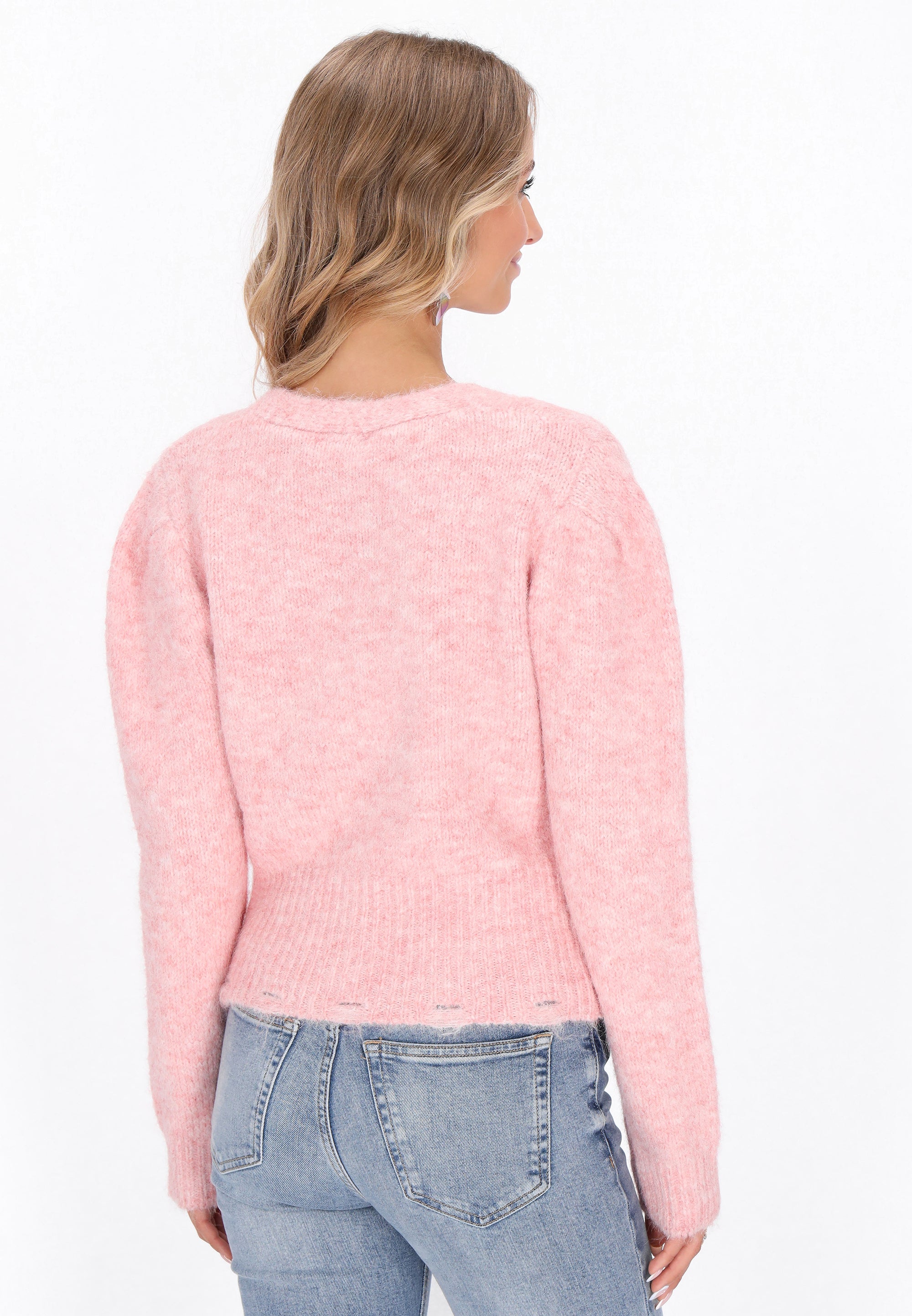 Sweter z kolekcji Fashion Look – klasyczny i wygodny w jednym. Ten sweter o regularnym kroju wykonany jest z miękkiej, komfortowej dzianiny. Posiada dekolt w serek i długie rękawy, co nadaje mu subtelnej elegancji i lekkości. Zapinany na guziki i ozdobiony delikatnym kwiatowym haftem, w połączeniu z minimalistycznym, gładkim wzorem, ten sweter sprawdzi się zarówno w codziennych, casualowych stylizacjach, jak i bardziej wyrafinowanych zestawieniach. Zapewnia przytulność i komfort, zgodnie z aktualnymi trendami mody.