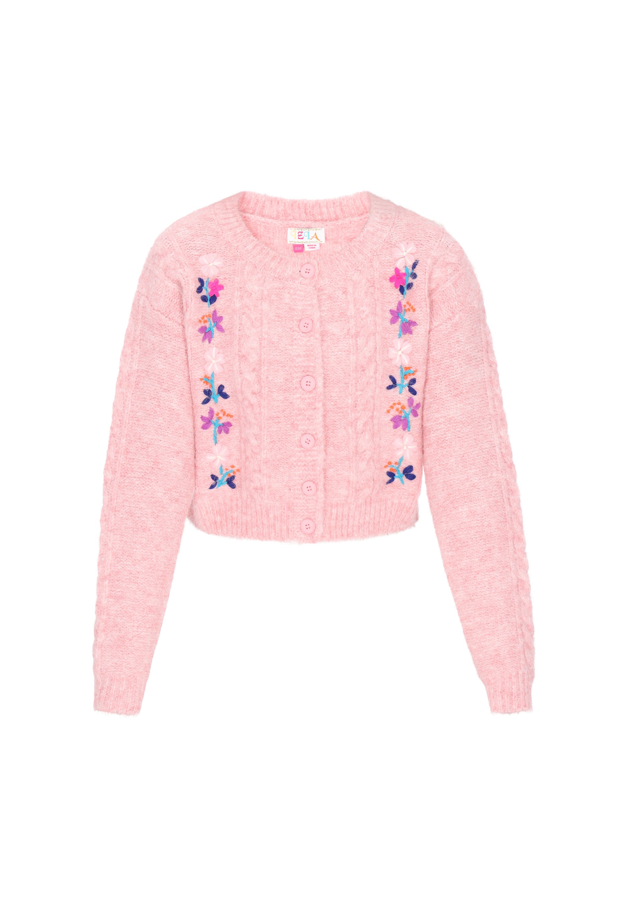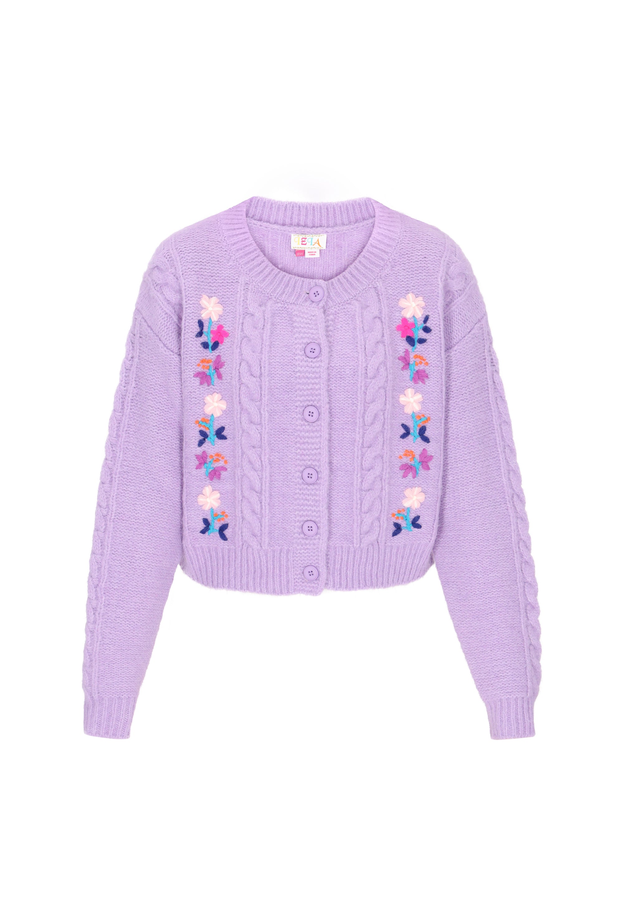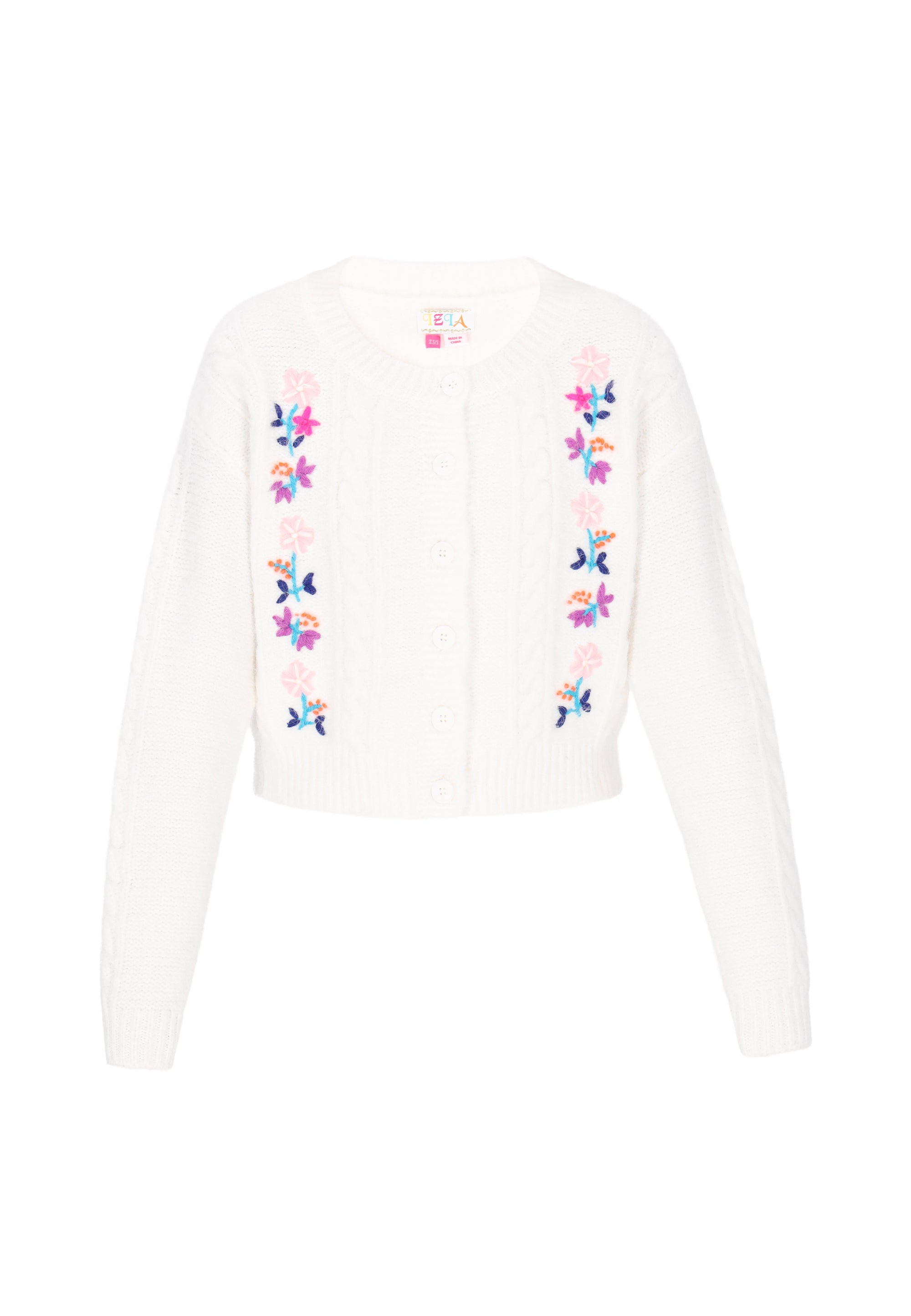 Keyword: button-up, cable pattern, cardigan, casual, comfortable, cozy, drop shoulder, fashion look collection, floral embroidery, knitted, long sleeves, relaxed fit, round neck