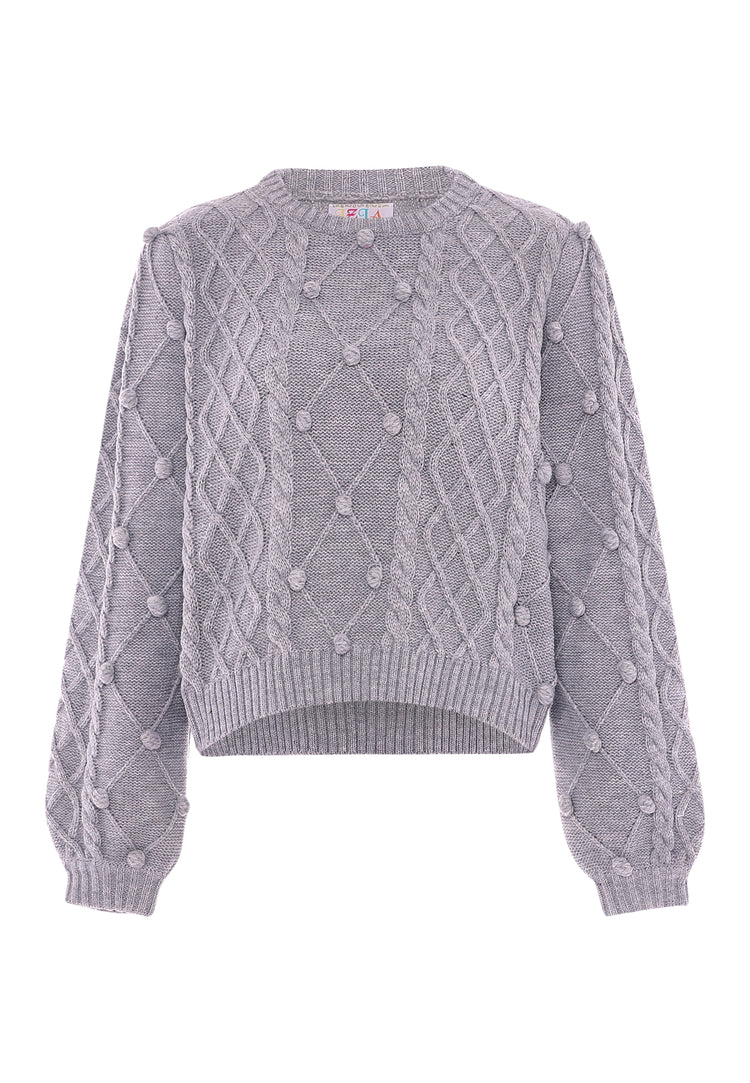 The exciting knitting pattern is the focus of this sweater from IZIA. The trendy women's sweater was knitted from a soft yarn and finished with a crew neck.