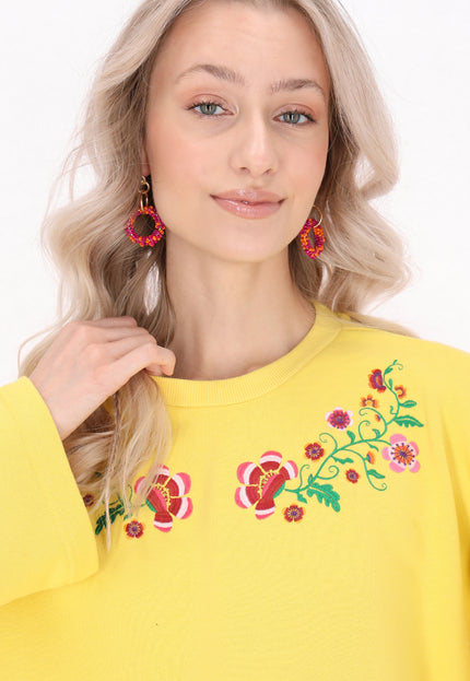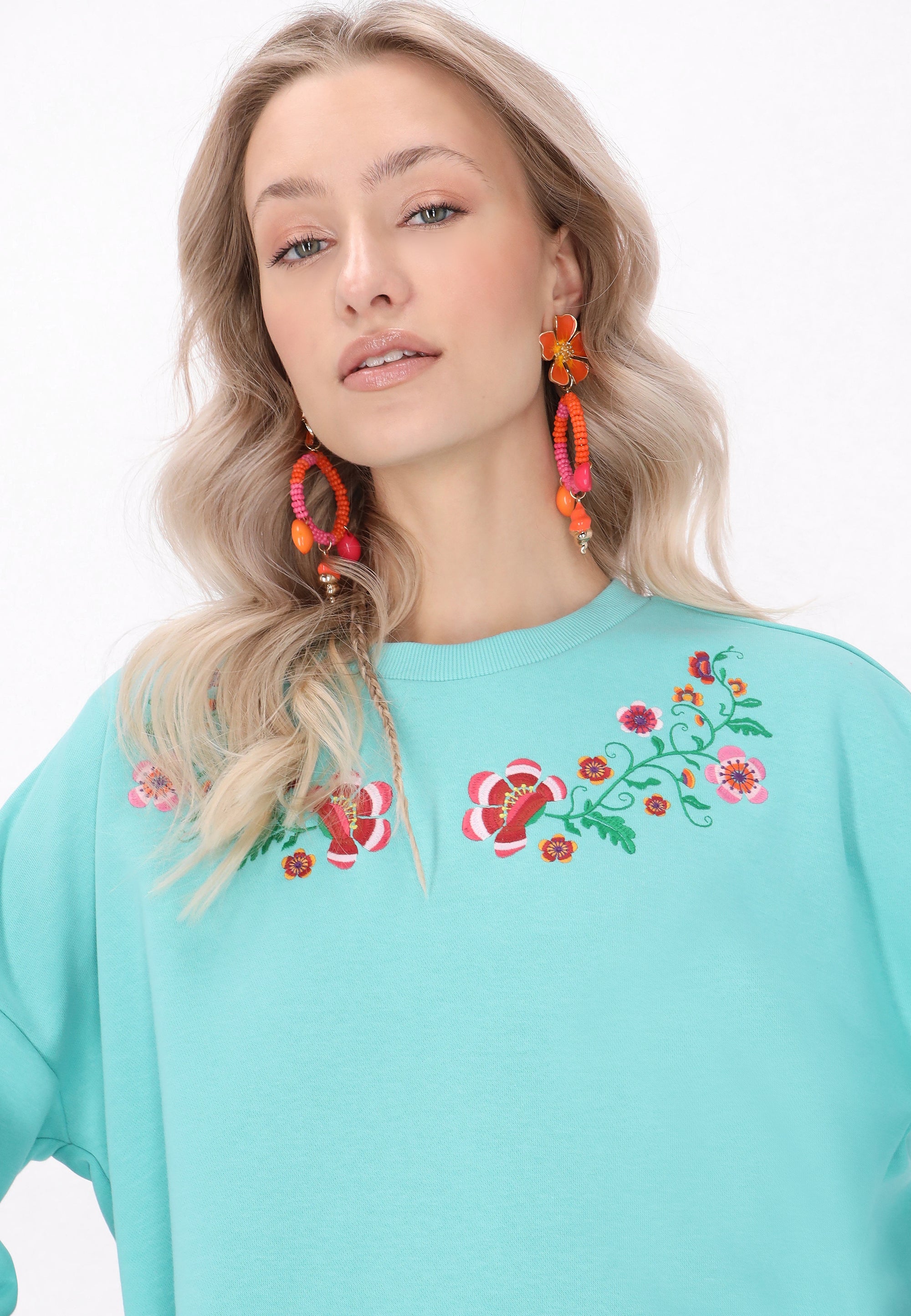 Unveil a chic addition to your wardrobe with this sweatshirt. Boasting a relaxed fit and drop shoulder design, it exudes casual comfort. The round neck and long sleeves enhance its everyday fashion appeal. Adorned with intricate floral embroidery, this knitted sweatshirt from the Boho Collection is effortlessly stylish for a laid-back yet trendy look.