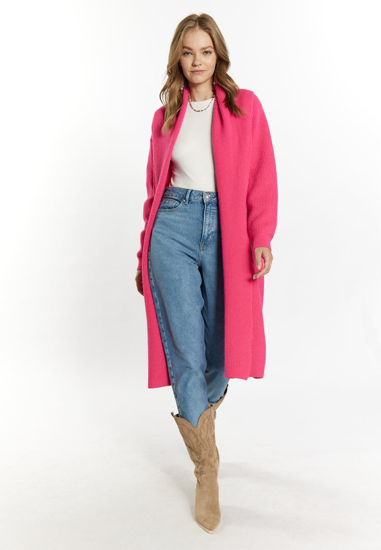 The long cardigan from IZIA puts you in a good mood even in winter with its bright colors. The open, casual fit is made from a soft rib-knit yarn blend and therefore ensures a high level of comfort. The long shawl collar has a nice width and is therefore also visible on the back.