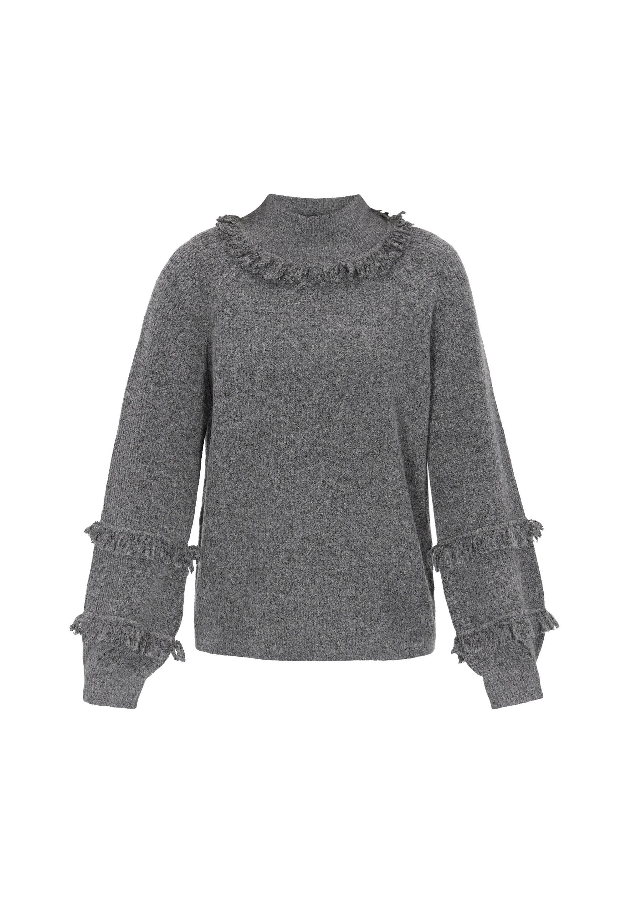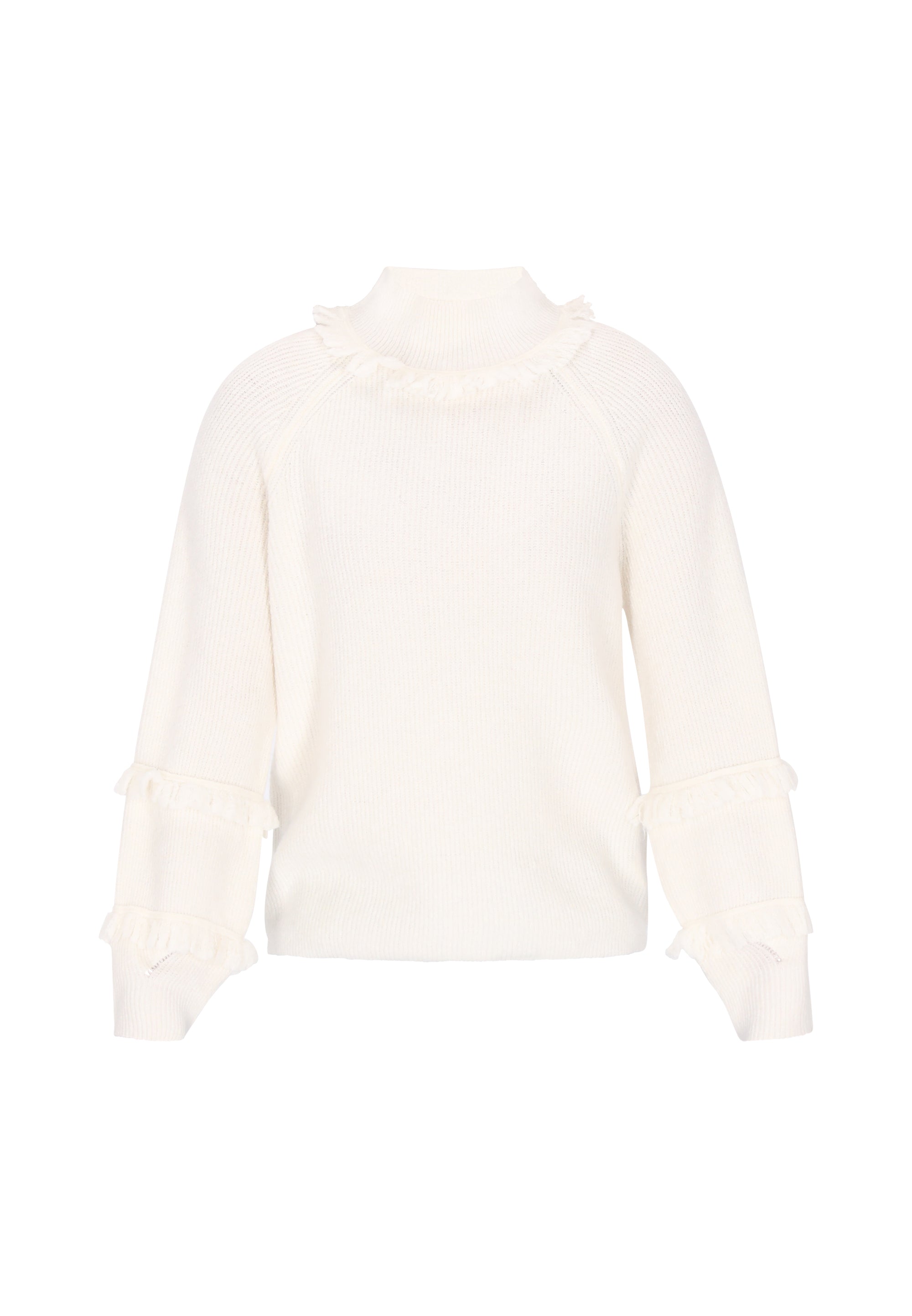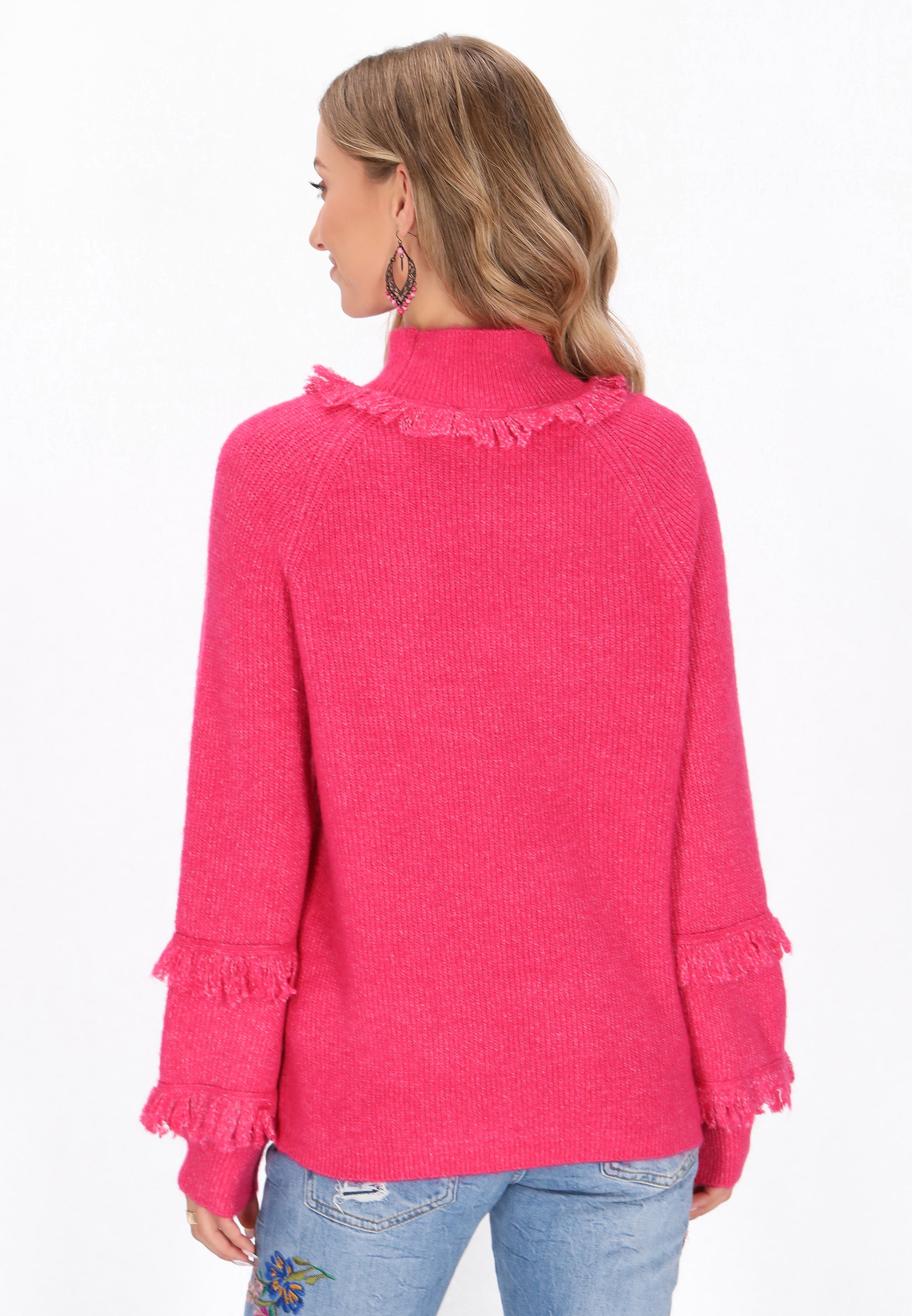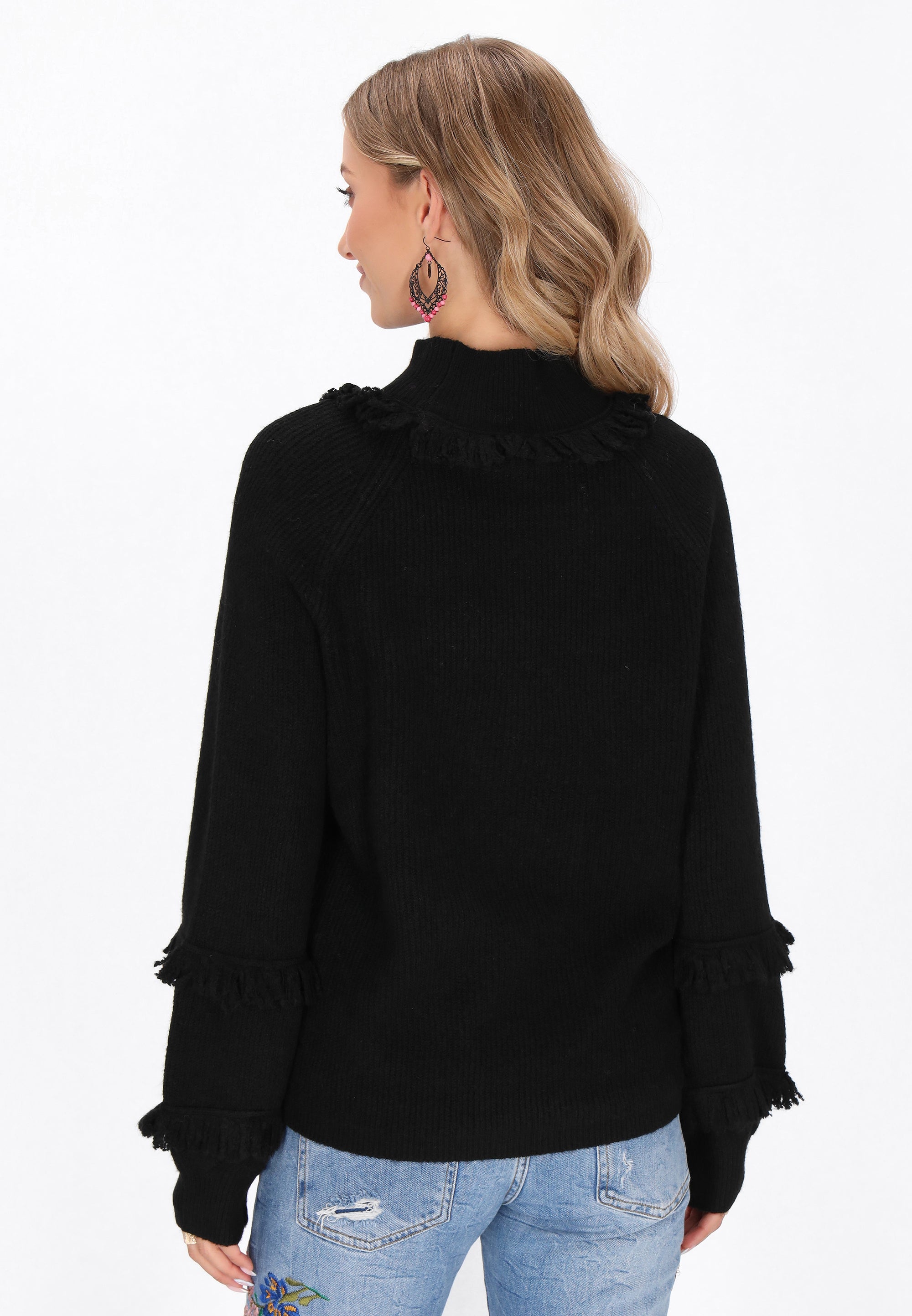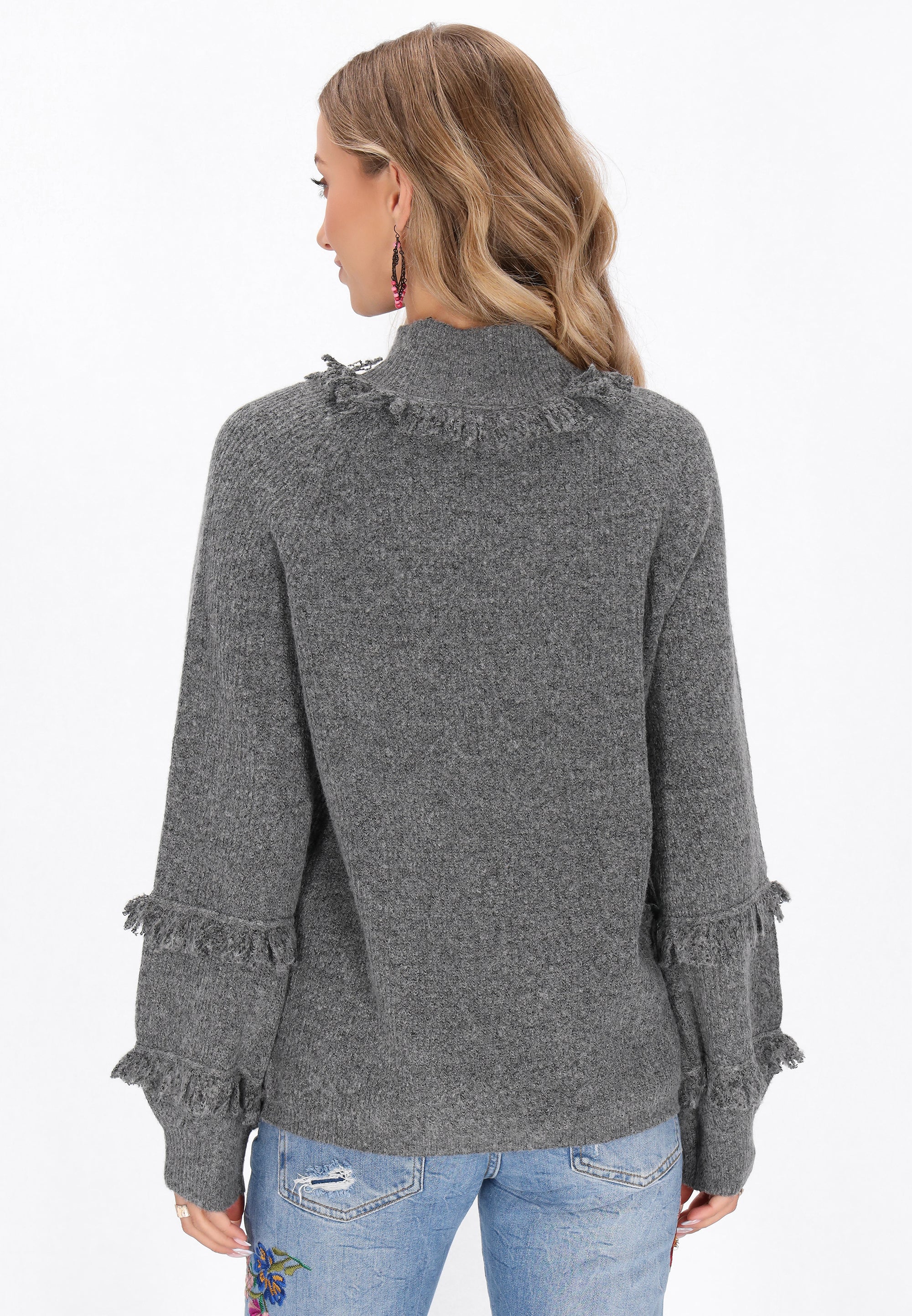 Stay effortlessly cozy with this relaxed-fit sweater from the Boho Collection. Designed with a stand collar and long bishop sleeves with raglan seams, it offers a comfortable and stylish silhouette. Fringed detailing adds a touch of playful texture, while the knitted plain pattern ensures timeless versatility. Perfect for casual wear, this cozy sweater combines comfort with bohemian charm, making it a must-have for relaxed, everyday styling.
