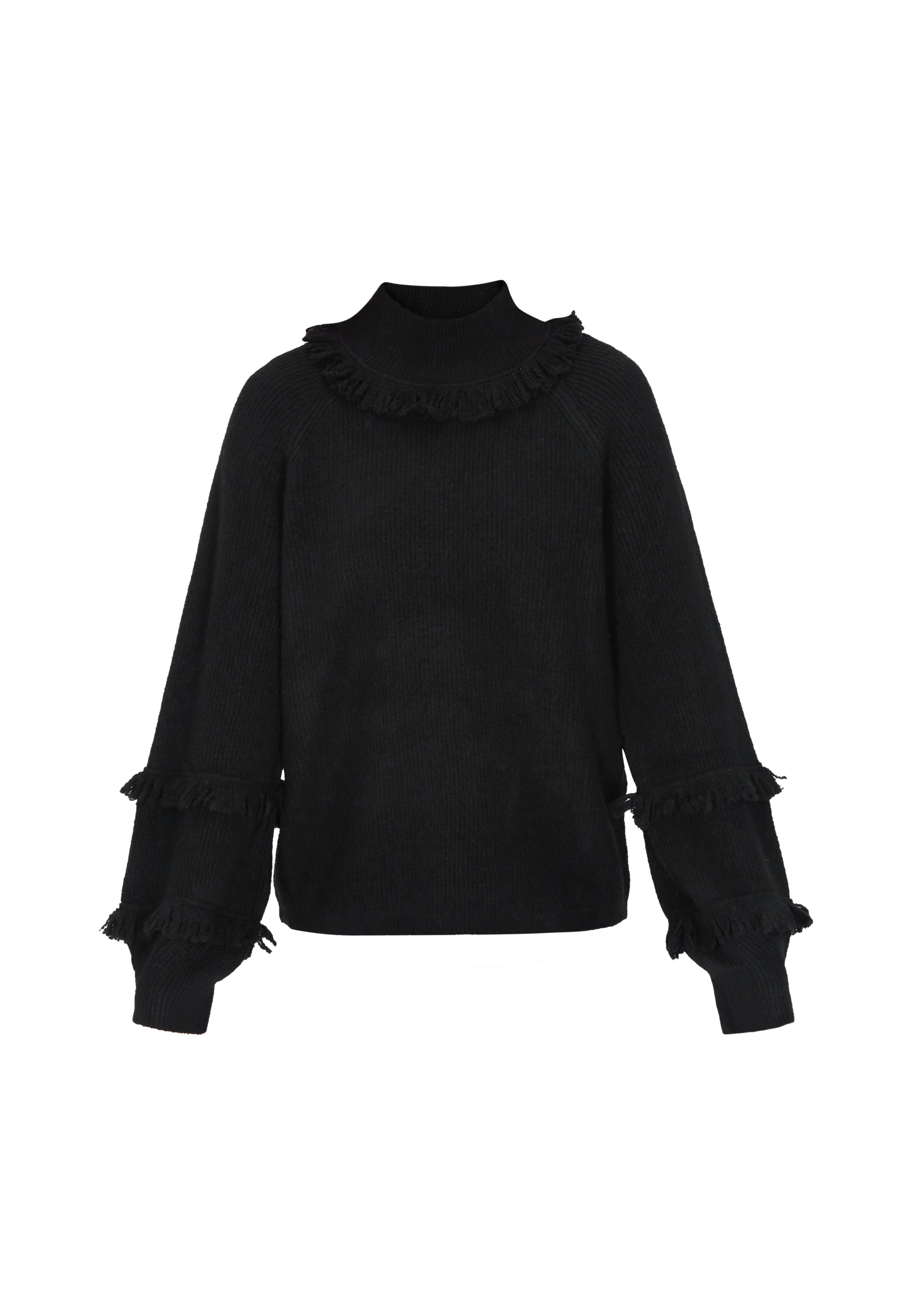 Keyword: bishop sleeves, boho collection, casual, comfortable, cozy, fringes, knitted, long sleeves, plain pattern, raglan, relaxed fit, stand collar, sweater