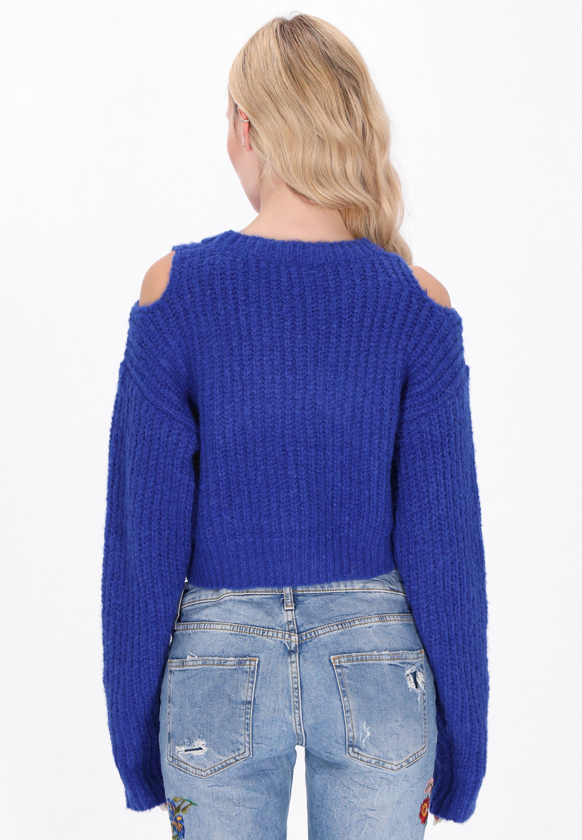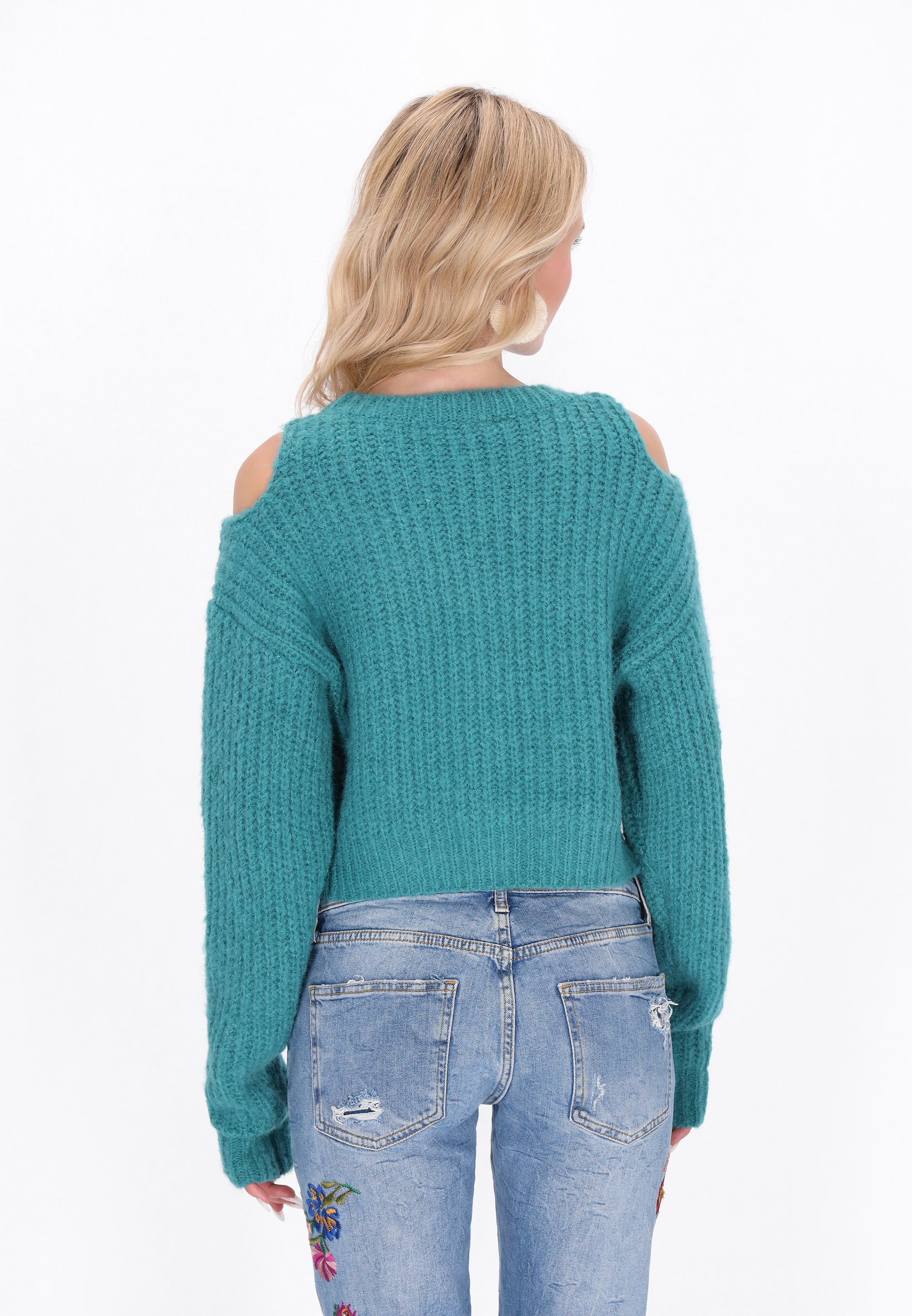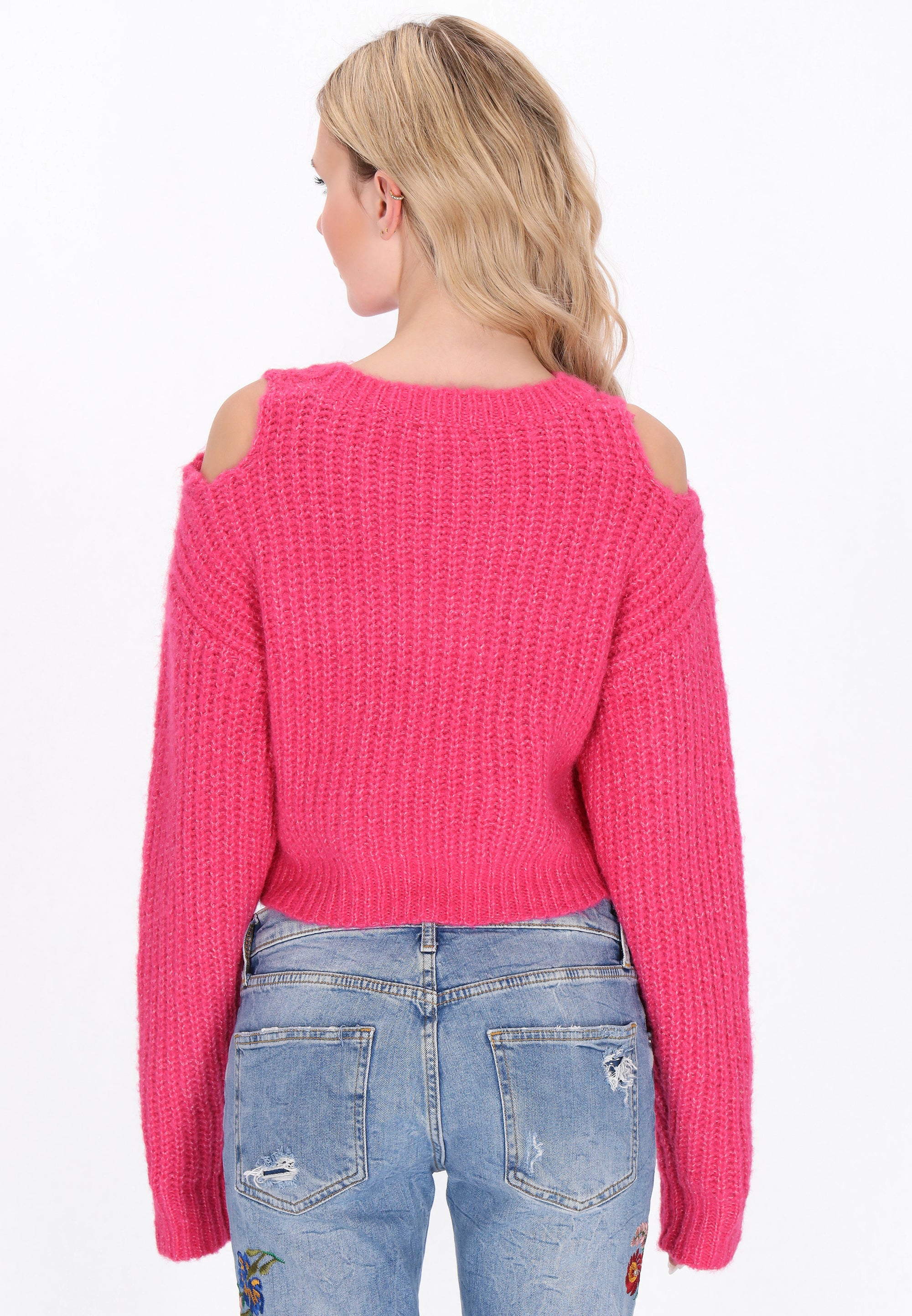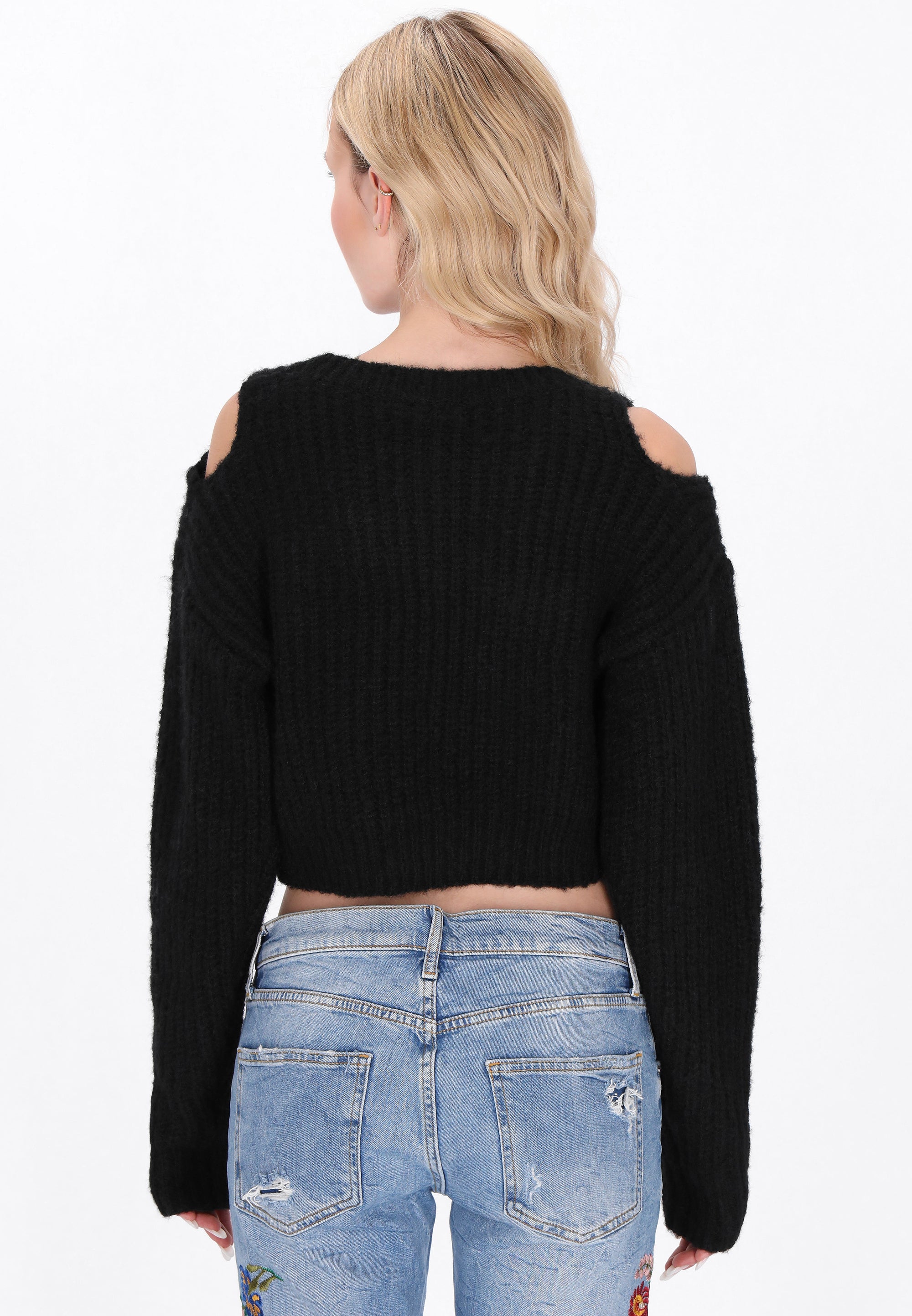 Add a touch of boho charm to your look with this unique sweater from the Fashion Look Collection. Made from soft, knit fabric, it provides comfort and coziness all day long. The regular fit and shorter length pair perfectly with high-waisted trousers for a fashionable look. The round neckline and long sleeves with striking cutouts at the shoulders give the piece a light and modern feel. The smooth, uniform pattern makes the sweater suitable for many occasionsboth everyday and more stylish outings. A perfect choice for lovers of relaxed elegance in a casual and boho style.