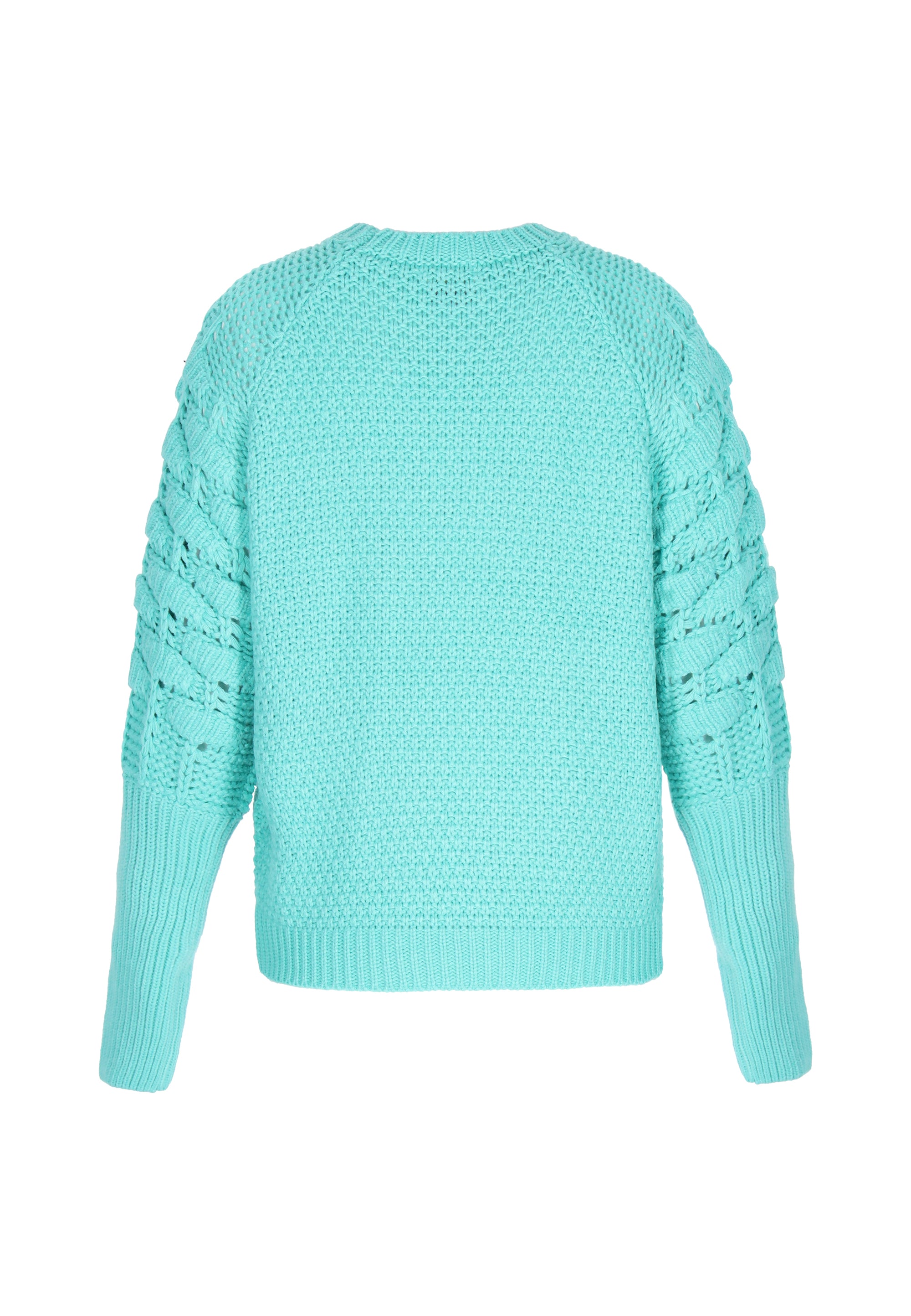 Keyword: ajour pattern, casual, comfy, fashion look collection, knitted, lantern sleeves, long sleeves, raglan, relaxed fit, round neck, sweater