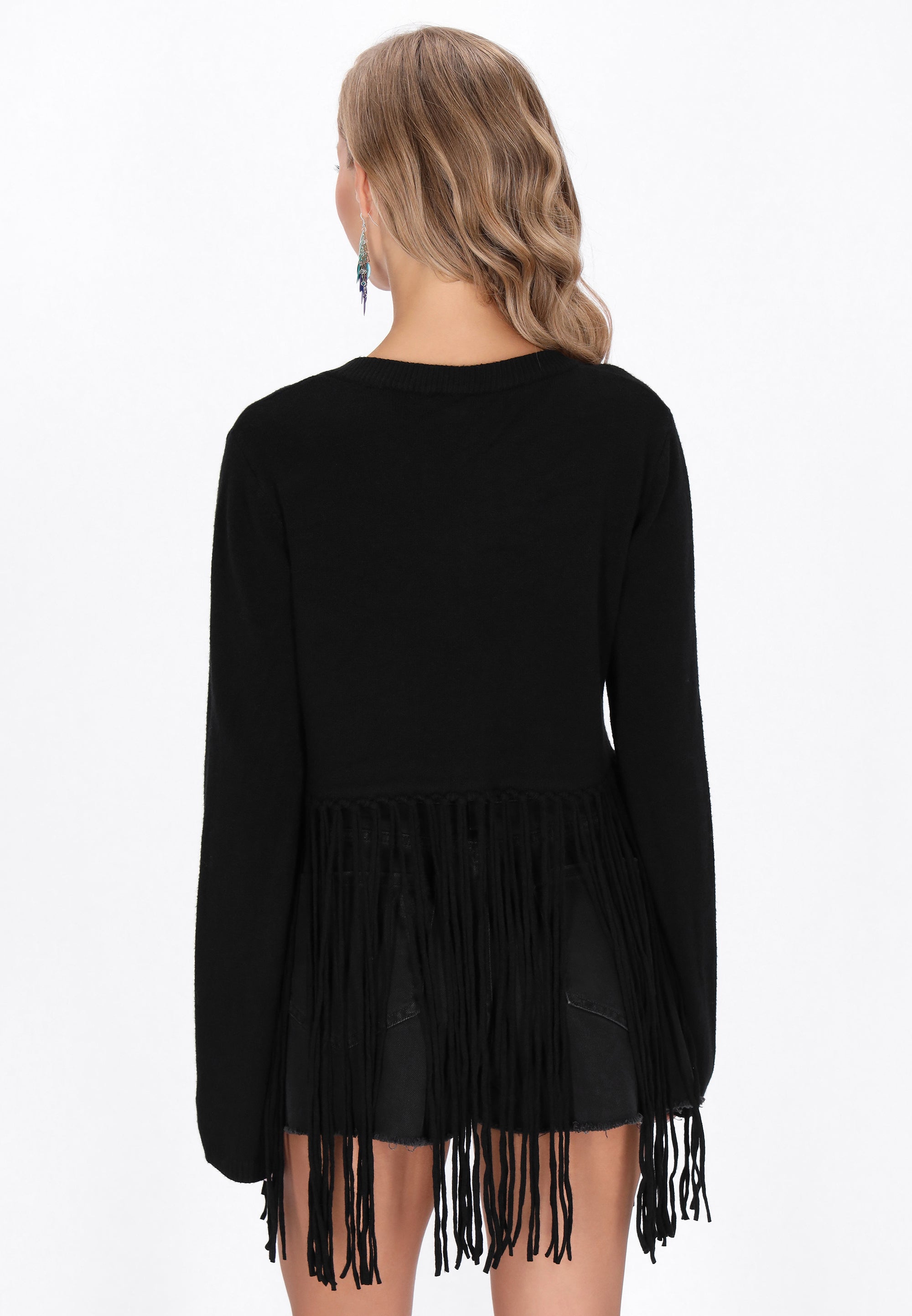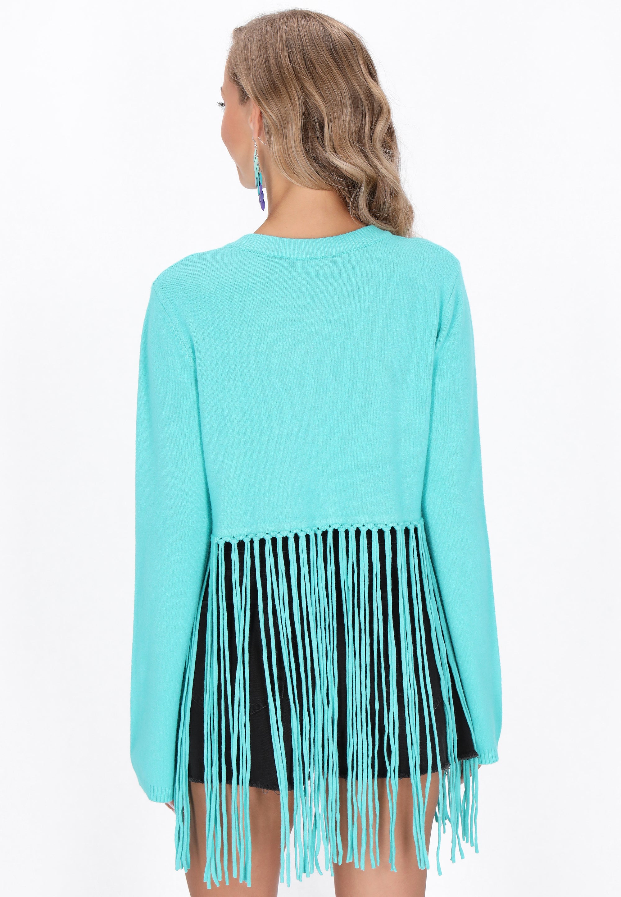 Enhance your style with this regular cut cardigan from our Boho Collection. Designed with a round neckline and long sleeves, this button-down model showcases charming tassels that enhance its ethnic vibe. The knitted fabric with a smooth pattern provides timeless elegance. Comfortable and versatile, it is ideal for layering.