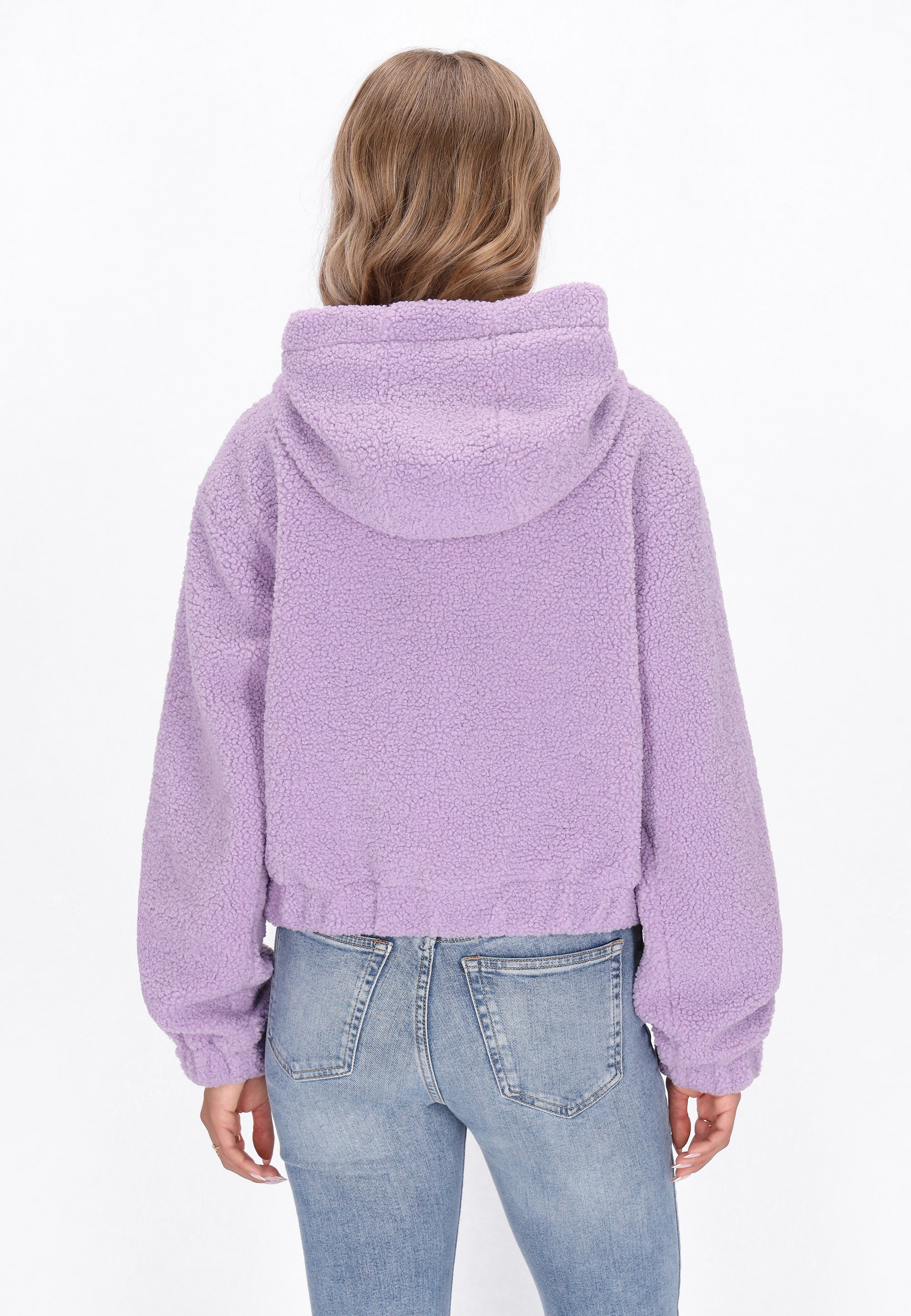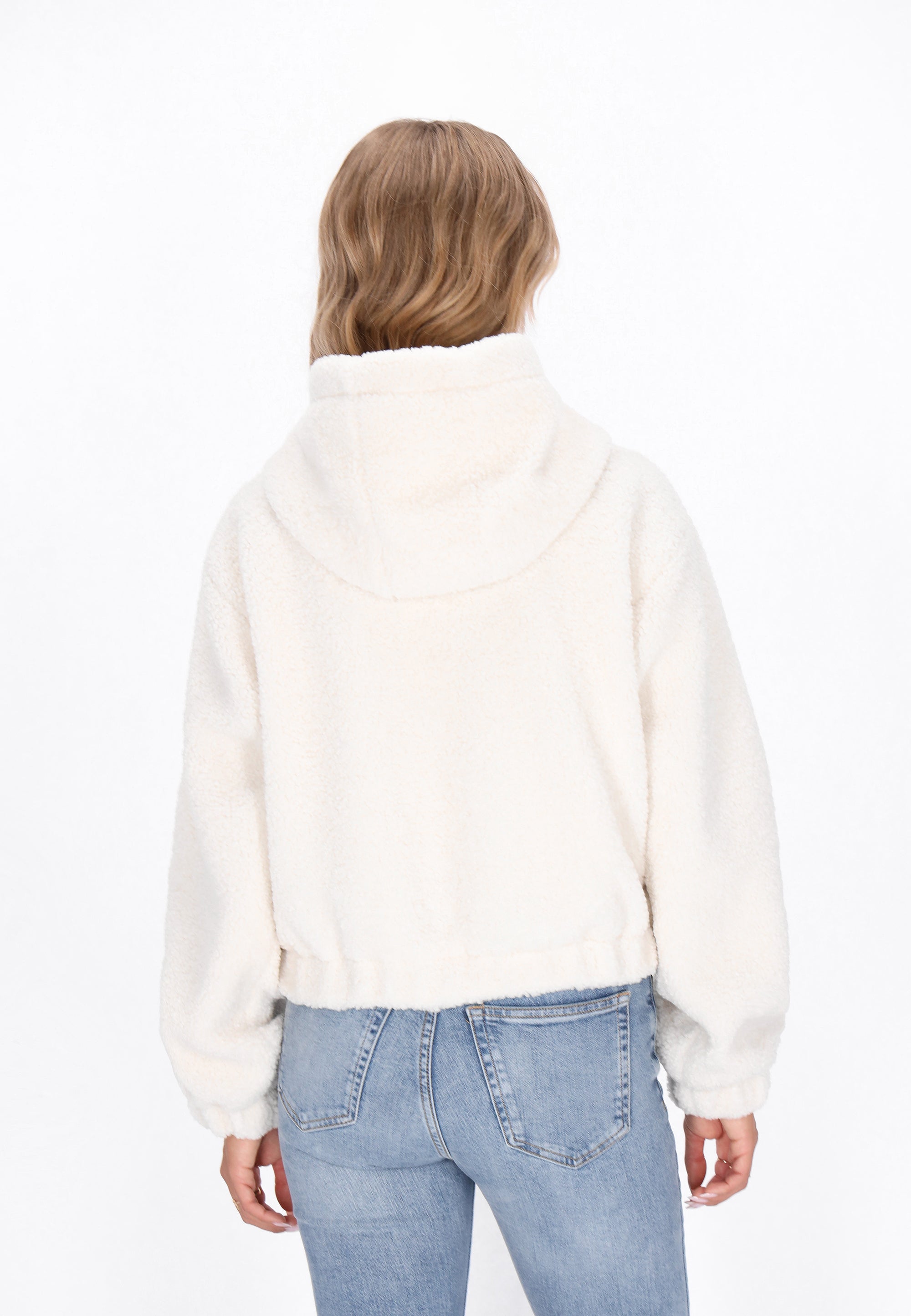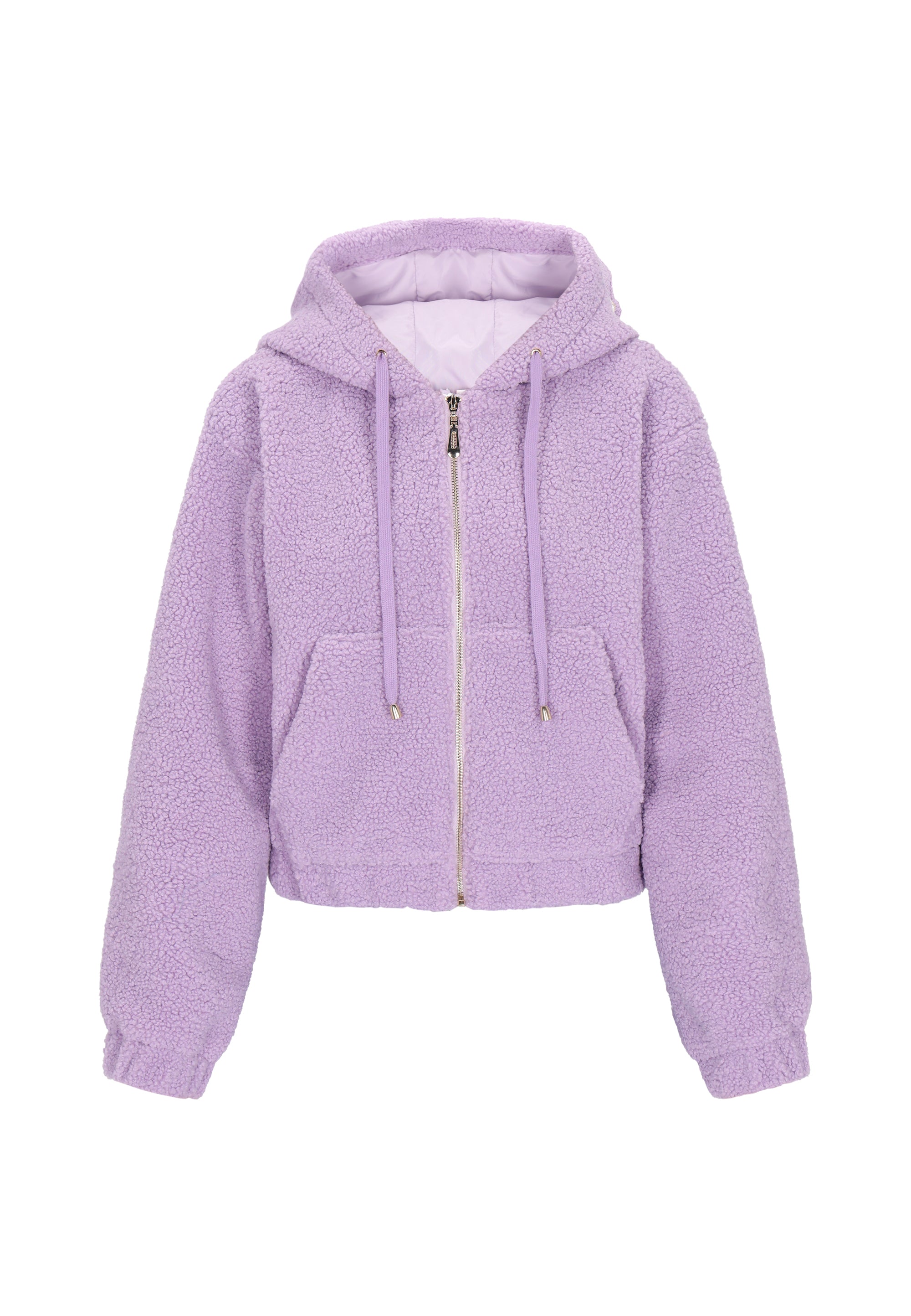 Enhance your casual closet with this trendy cropped jacket in a relaxed fit. The cozy hood has drawstrings for added comfort, and the long sleeves taper to matching cuffs. This zippered jacket has two convenient front pockets and an elasticized hem, making it ideal for fashionable styling that combines style and coziness. This jacket is part of the Fashion Look Collection.