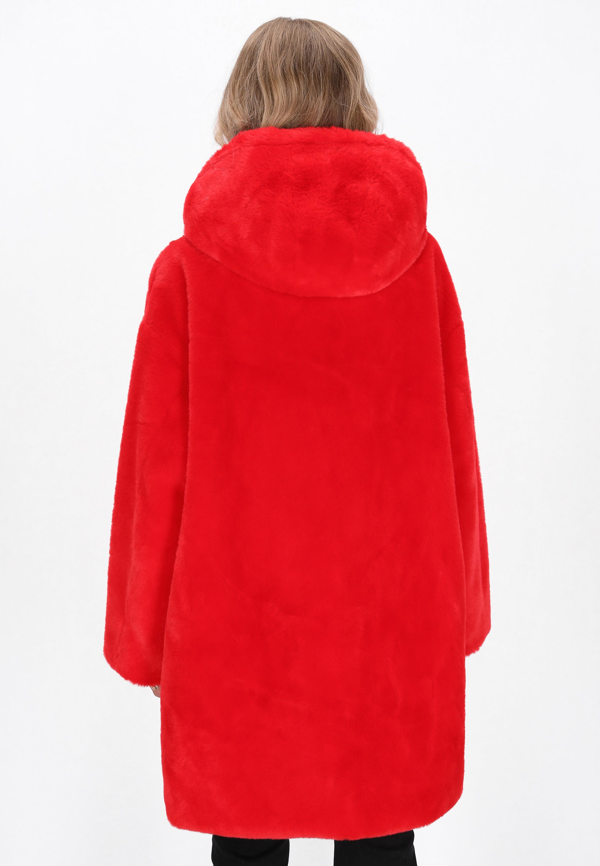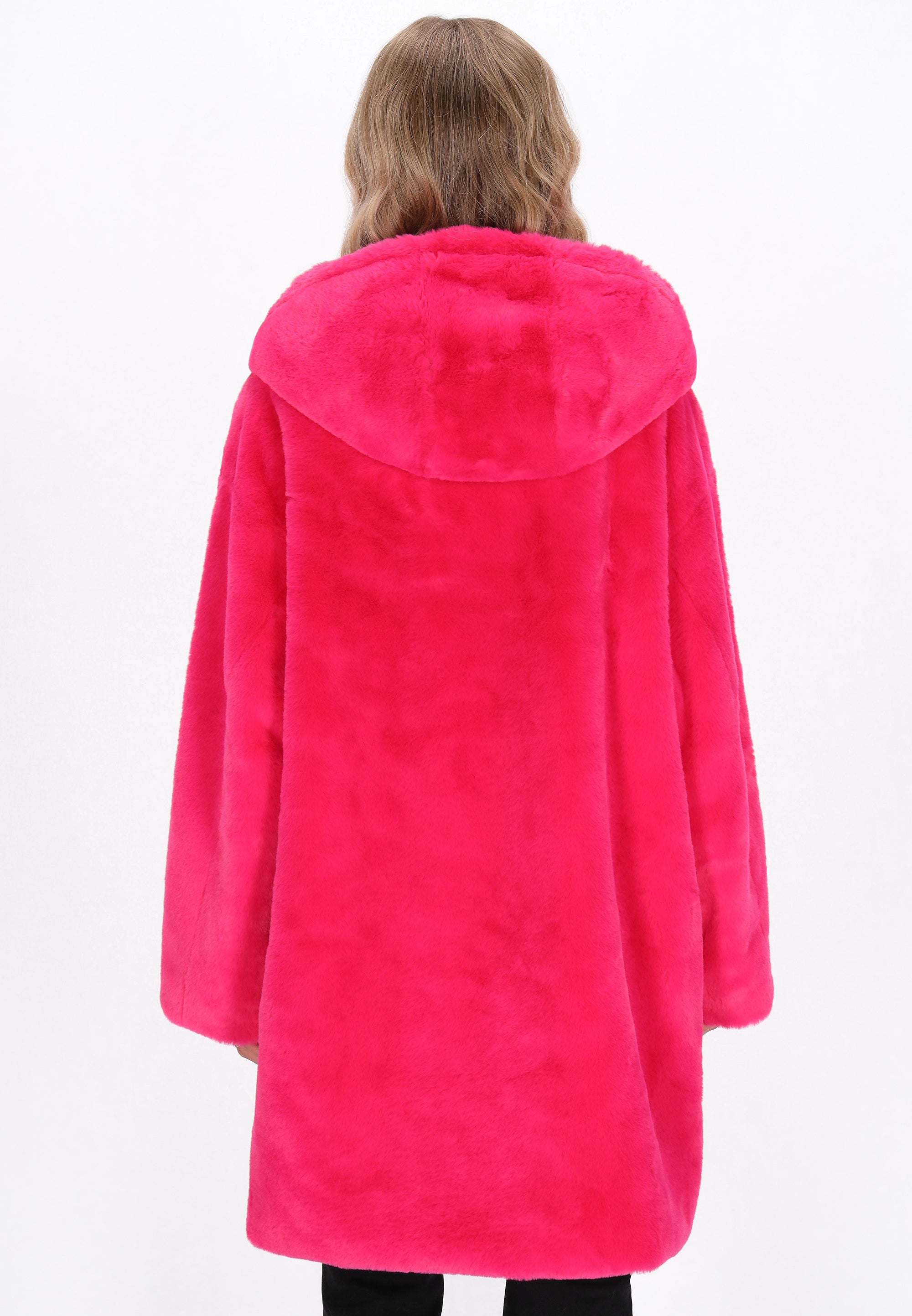 A stylish and functional coat from the Outerwear Collection that combines a fashionable look with comfort. Made of soft faux fur, it provides cozy warmth on colder days. The loose fit allows for freedom of movement, while the classic lapel collar and practical hood add a versatile touch. The coat features long sleeves, a double-breasted button closure, and functional pockets. The plain pattern makes it easy to match with everyday outfits. The perfect choice for those who appreciate casual style and comfort.