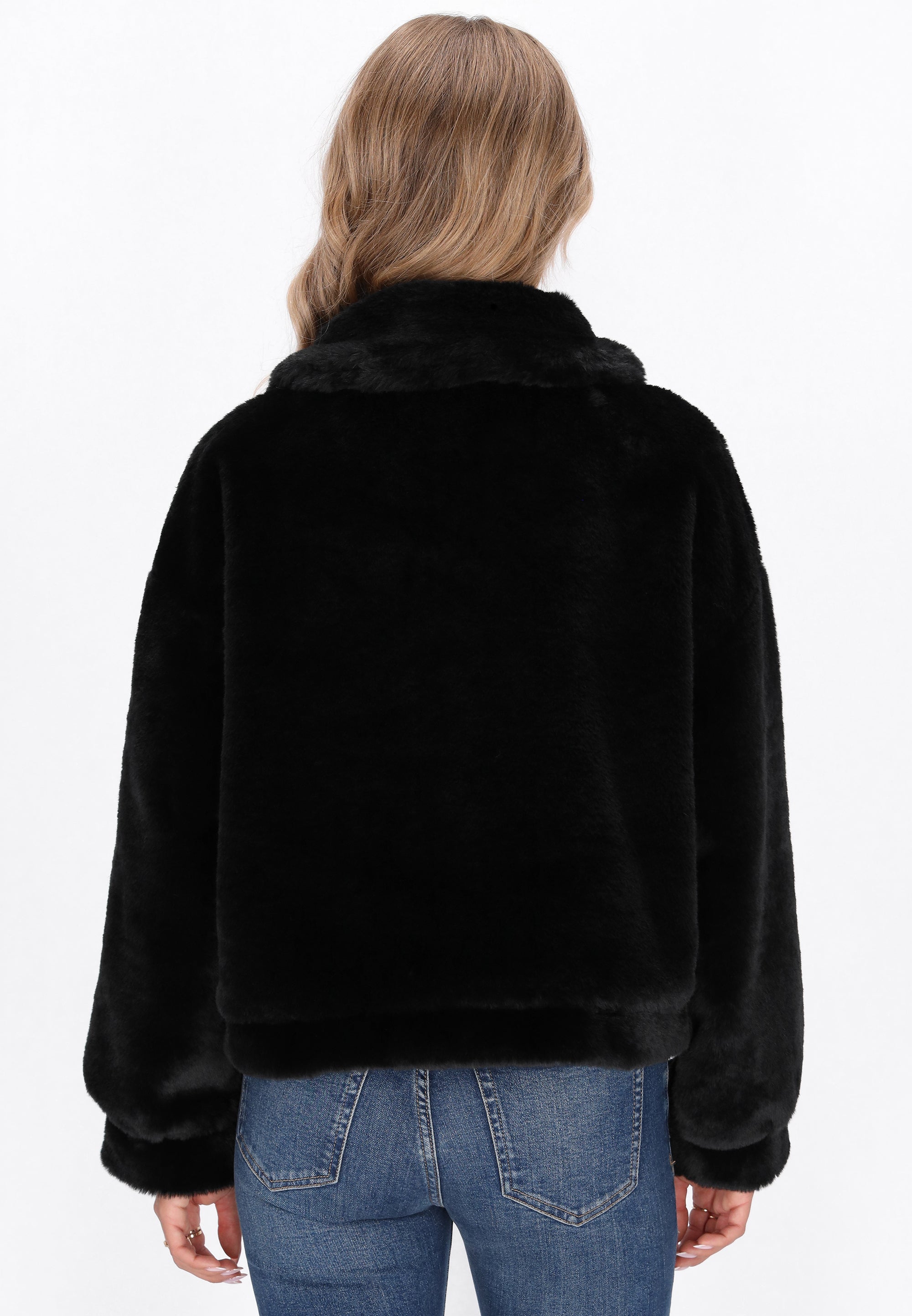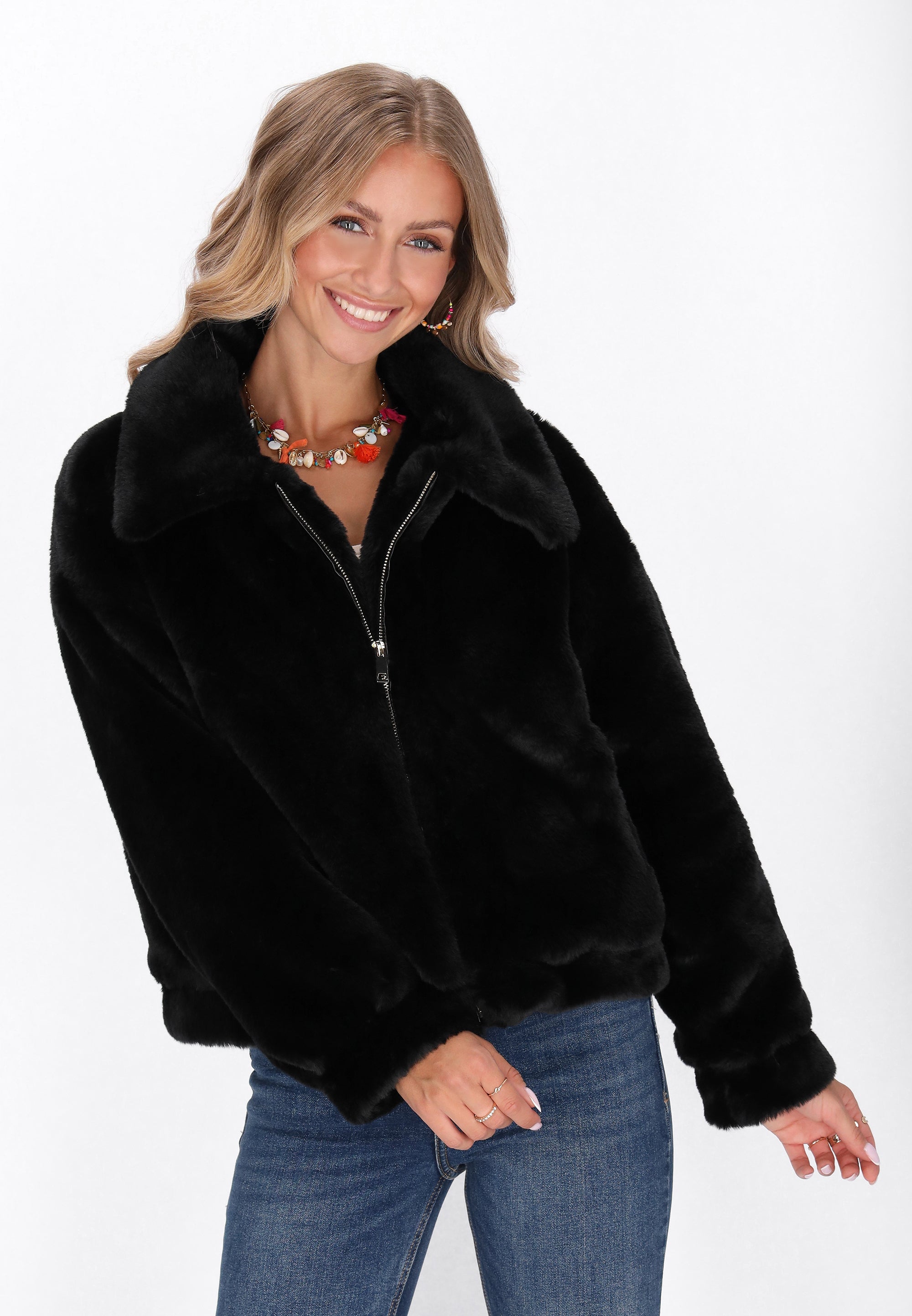 This stylish jacket from the Outerwear Collection is designed with comfort and everyday wear in mind. Made of soft faux fur, it provides warmth and coziness even on colder days. The classic collar, long sleeves, and zipper closure create a timeless design that will complement a variety of outfits. The jacket features practical pockets and a solid pattern, making it a versatile choice for everyday wear. Perfect for those who value casual style and comfort.