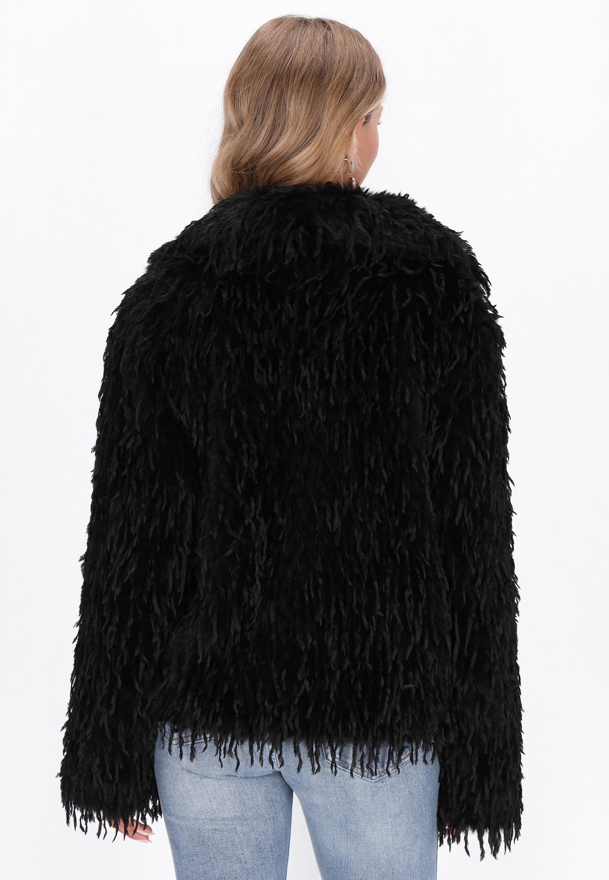 Keyword: button-up, casual, comfortable, cozy, fashion look collection, faux fur, jacket, lapel collar, long sleeves, plain pattern, relaxed fit