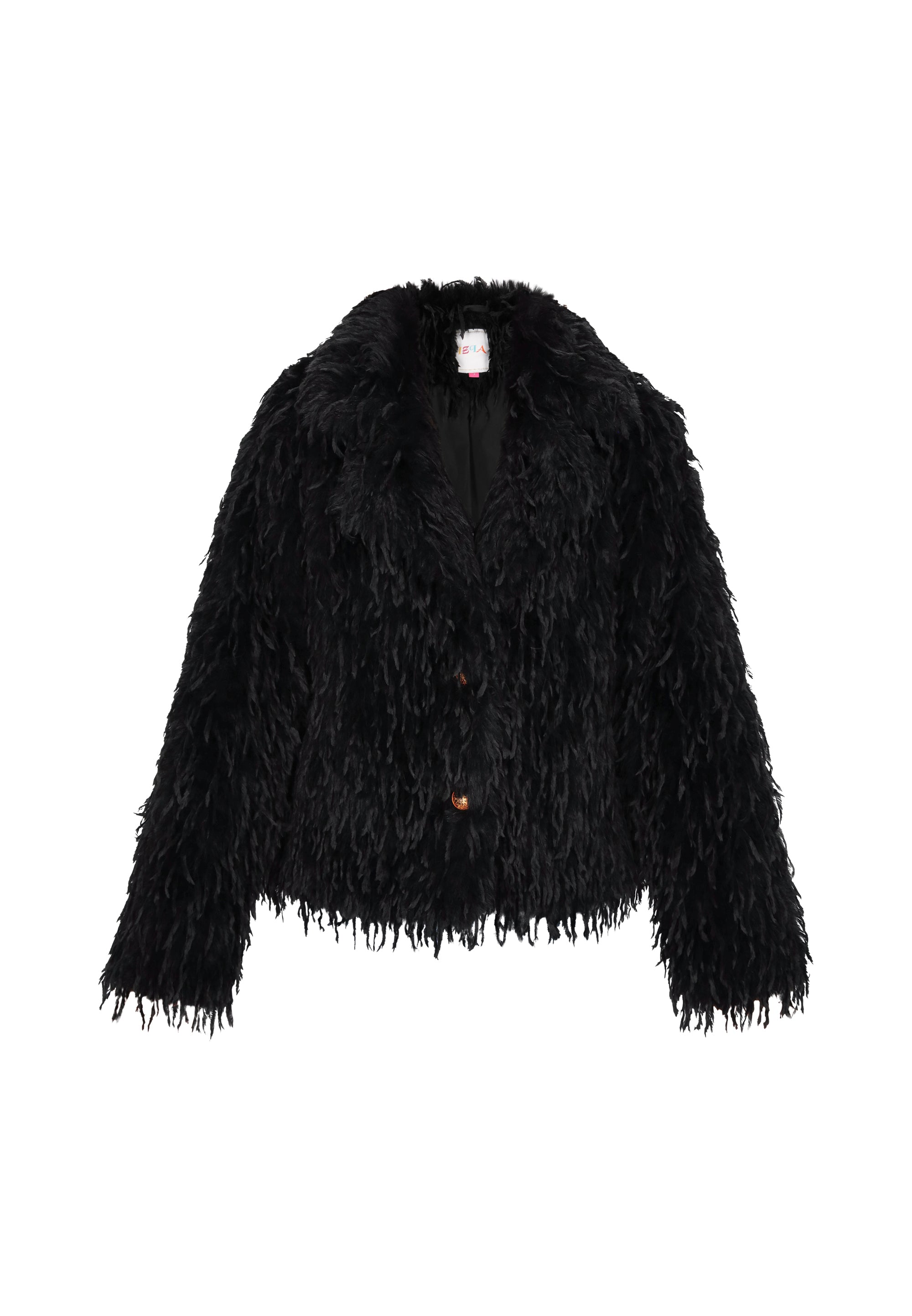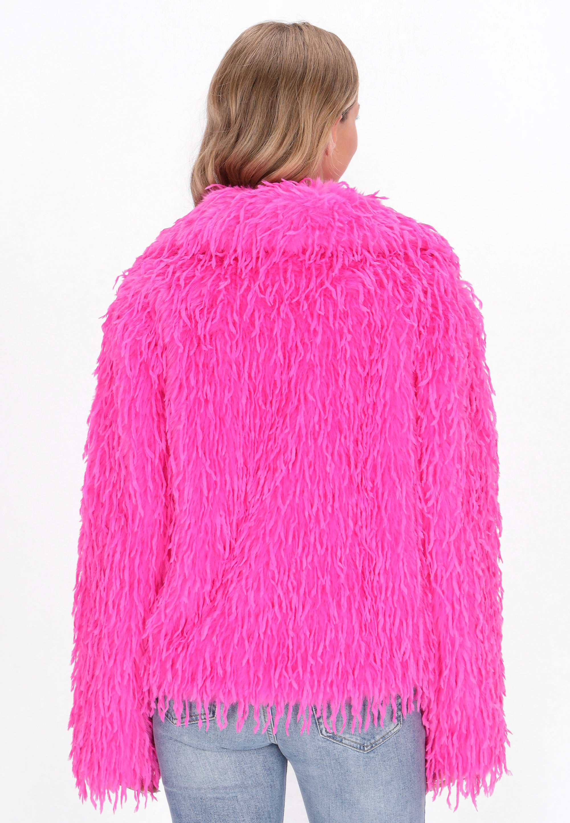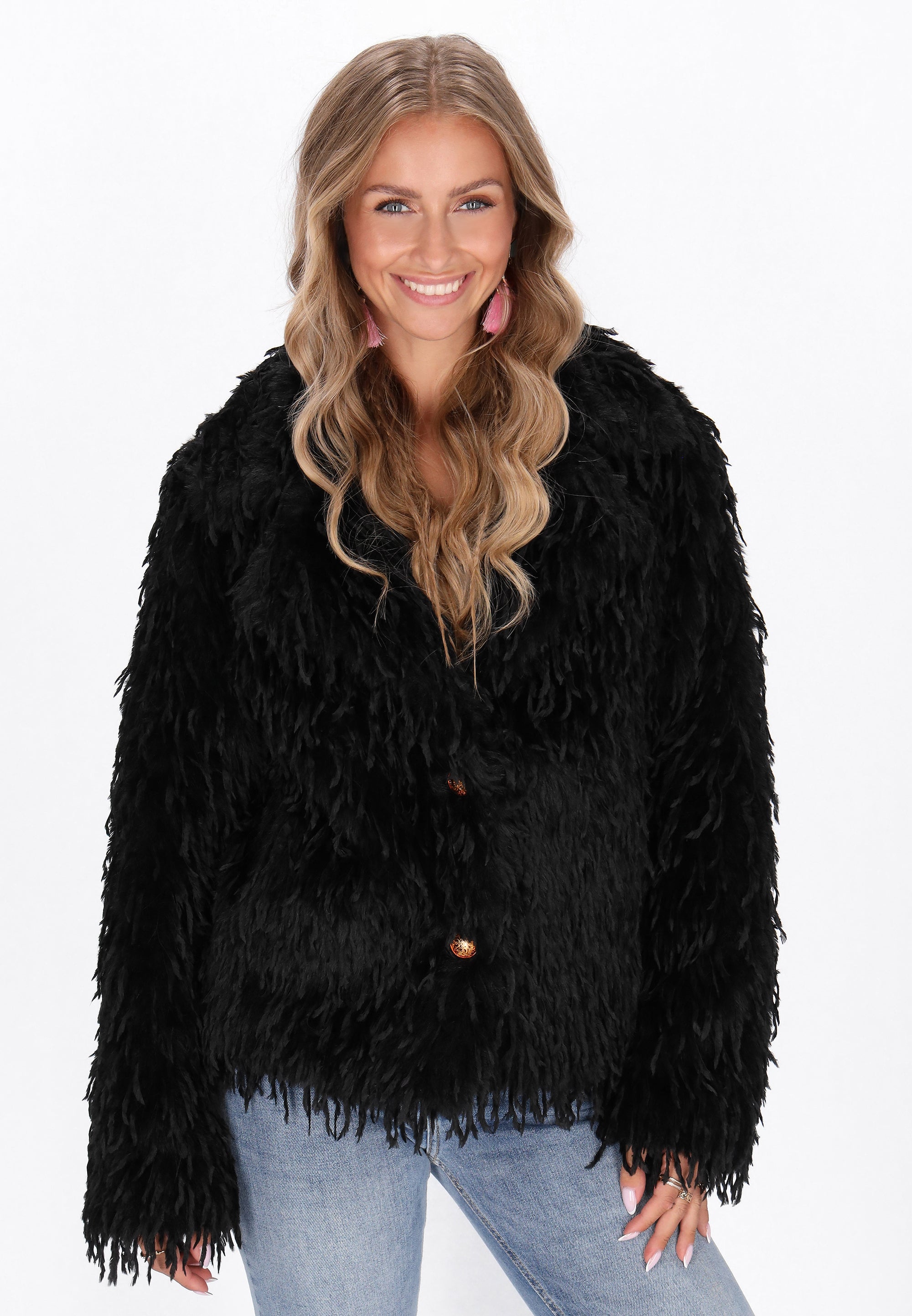 Discover a fashionable and youthful addition to your closet with this cropped jacket. It is made of faux fur. It features a lapel collar, long sleeves and a loose fit, so it exudes comfort and coziness. A button closure at the front and tassels at the bottom add a playful touch to the simple design. Perfect for casual wear or as a fashionable closet piece. It is part of the Fashion Look Collection.