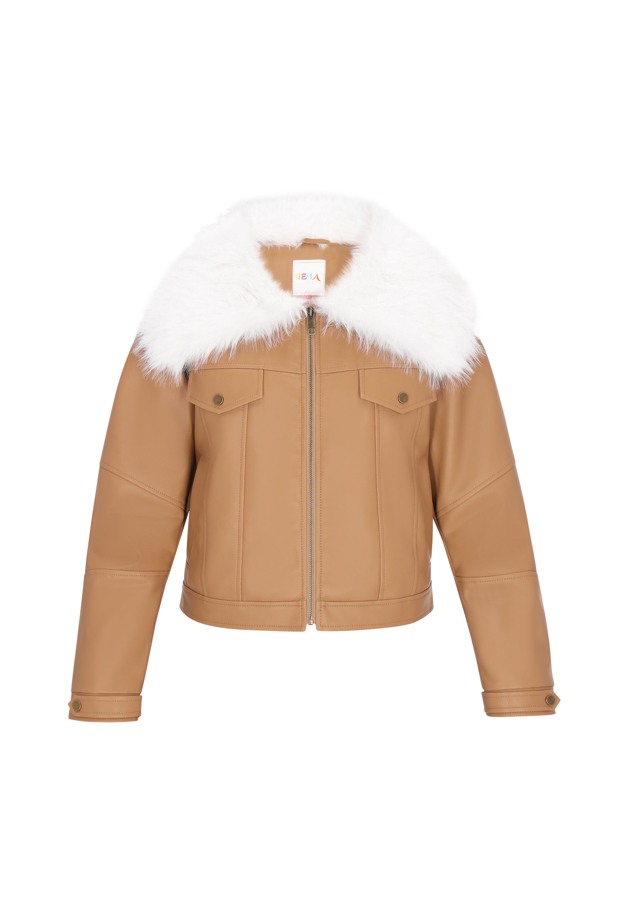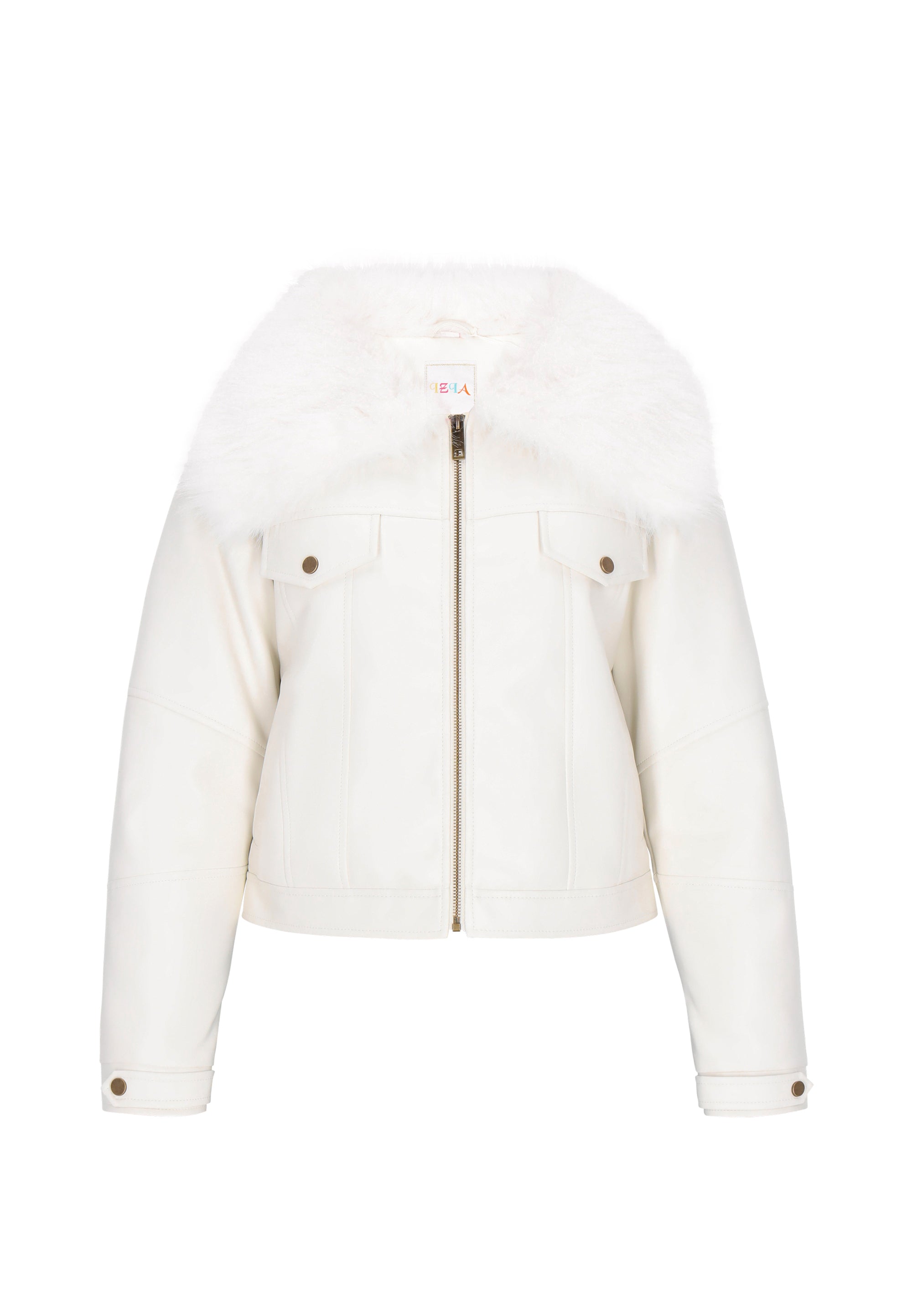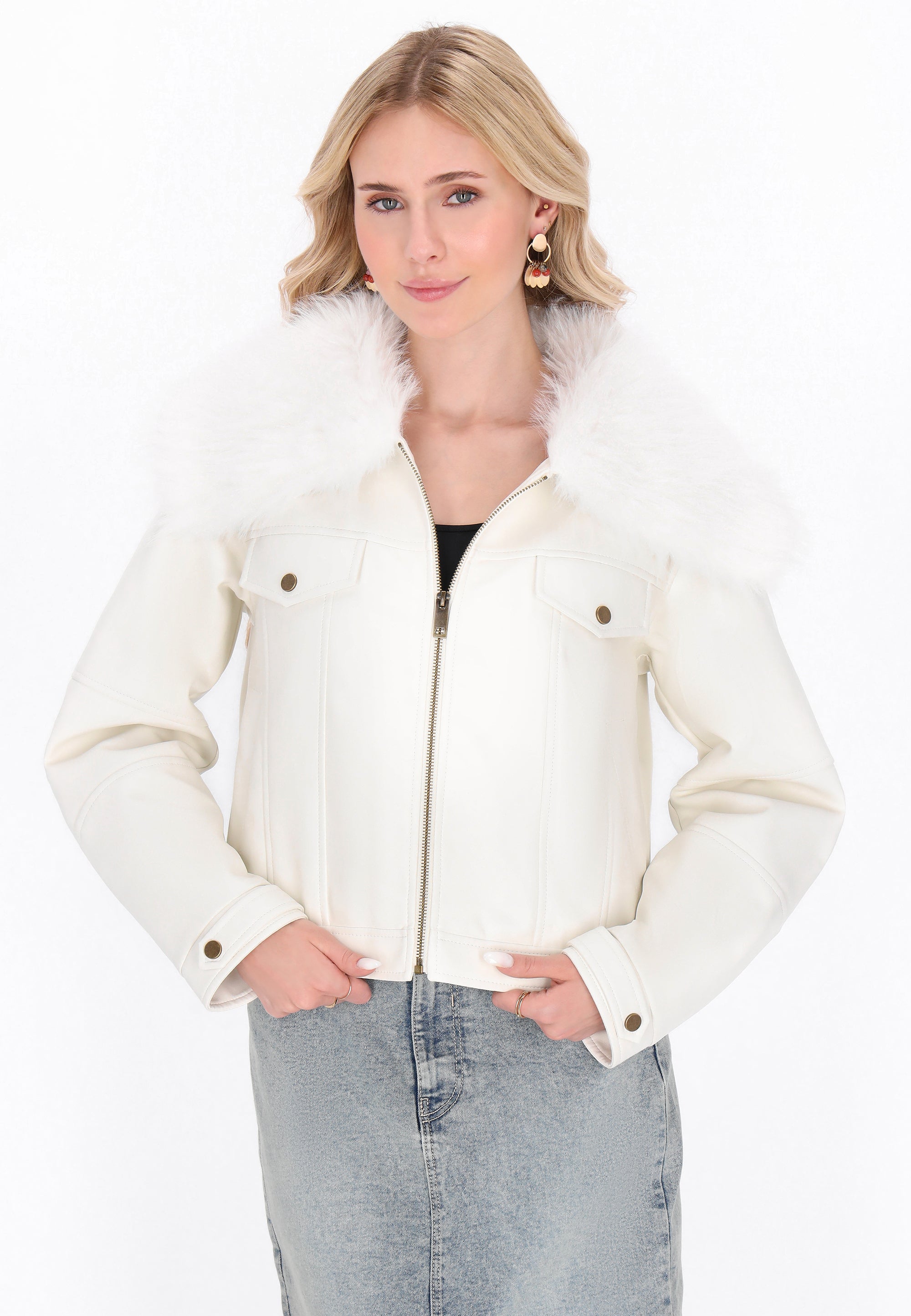 Keyword: casual, classic collar, comfy, cozy, eco leather, fashion look collection, faux fur, flap pockets, jacket, long sleeves, outerwear, plain pattern, regular fit, zip-up